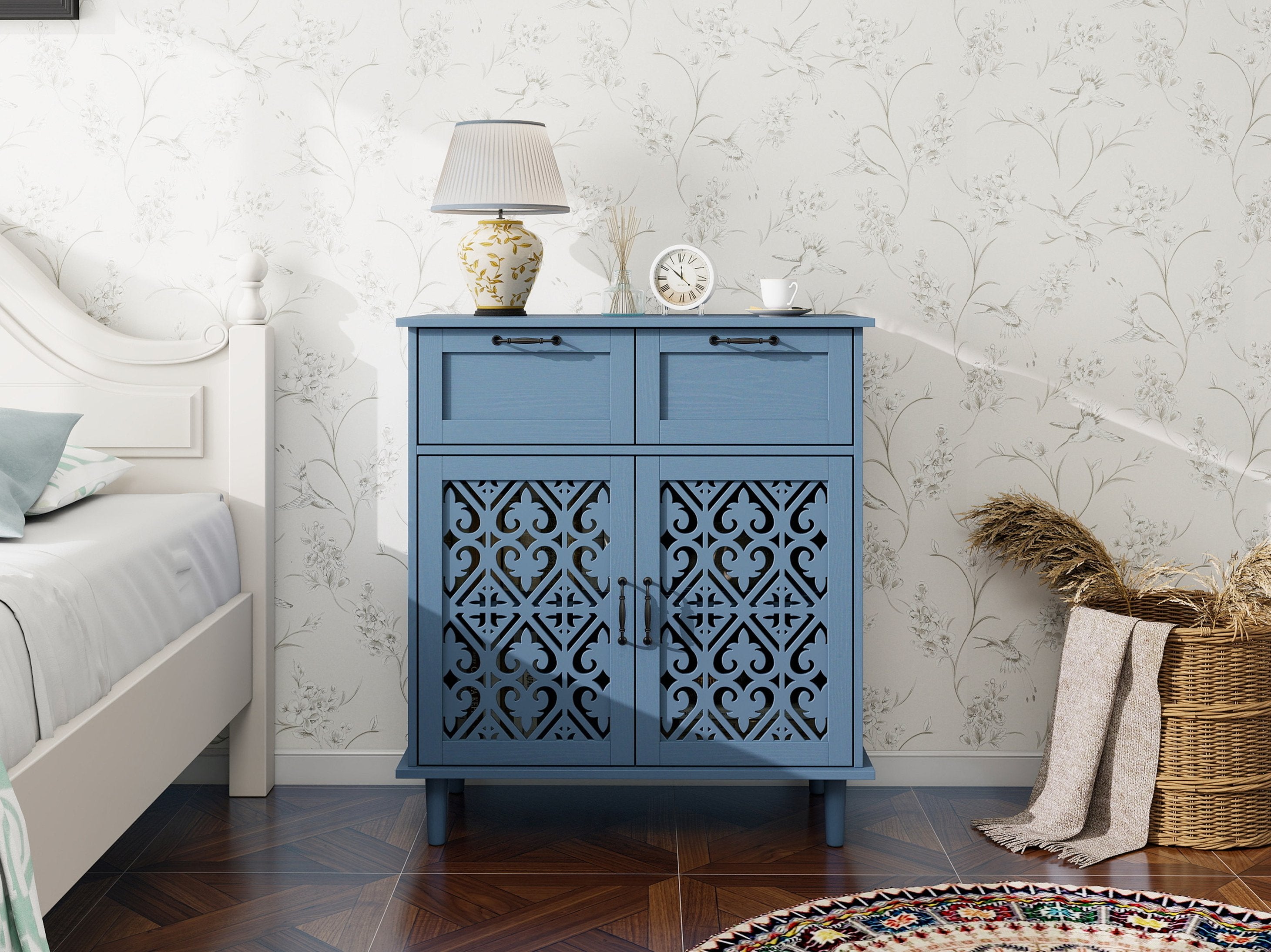 - The cabinet door panel is carved with symmetrical pattern, beautiful shape, good air permeability