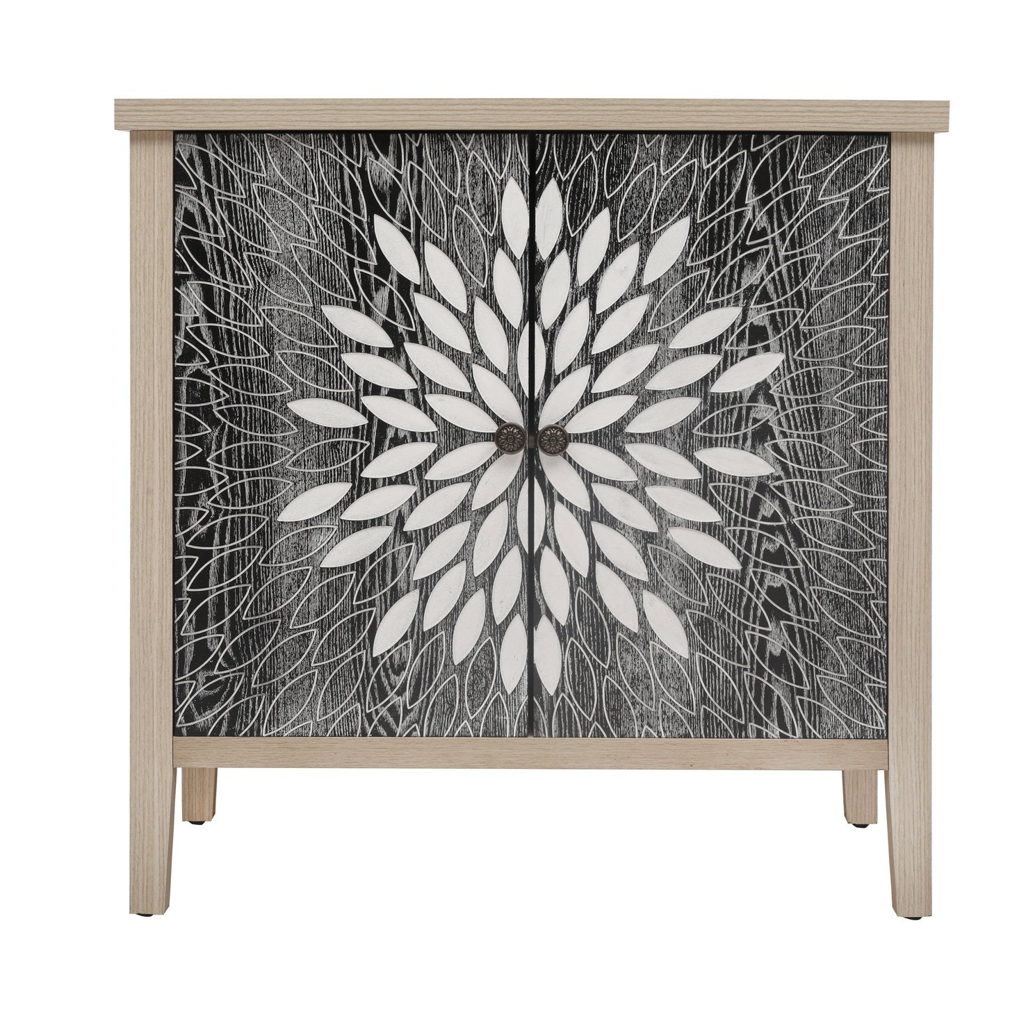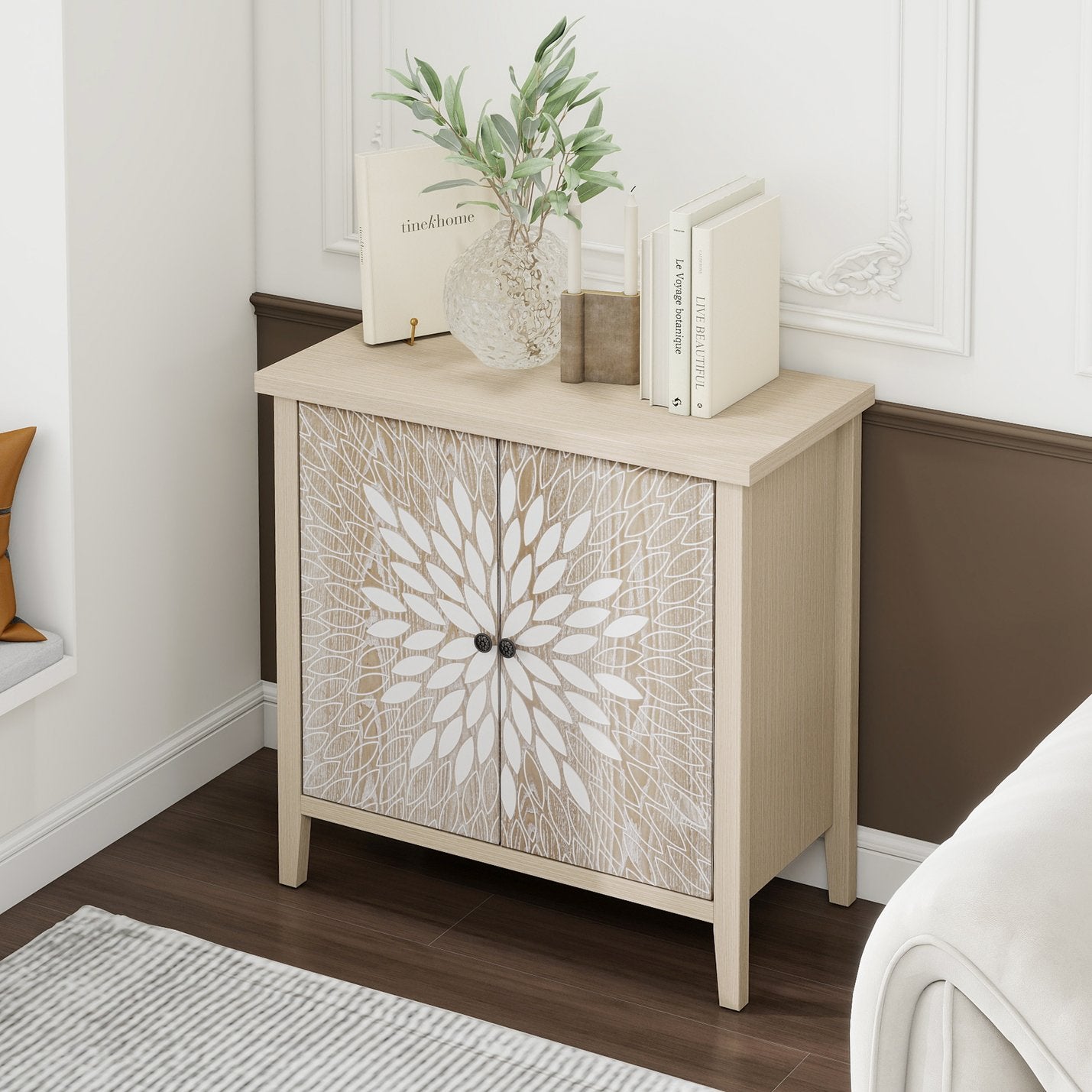 Add timeless elegance and practical storage to your home with this carved 2-door cabinet — a compact, decorative piece designed for living rooms, hallways, kitchens, or entryways. Hand-finished details and thoughtfully engineered features deliver both style and functionality: carved floral motifs on the doors and matching handles create a cohesive accent, while adjustable shelving and an anti‑tip device make the unit safe and adaptable for everyday use.