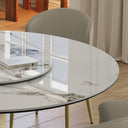 Elevate your dining space with a luxurious, durable centerpiece that combines marble-like beauty and modern engineering. This 59" round sintered stone table offers a refined aesthetic, scratch- and heat-resistant performance, and a stable gold stainless-steel hourglass base — ideal for everyday family meals, dinner parties, or upscale hospitality settings.