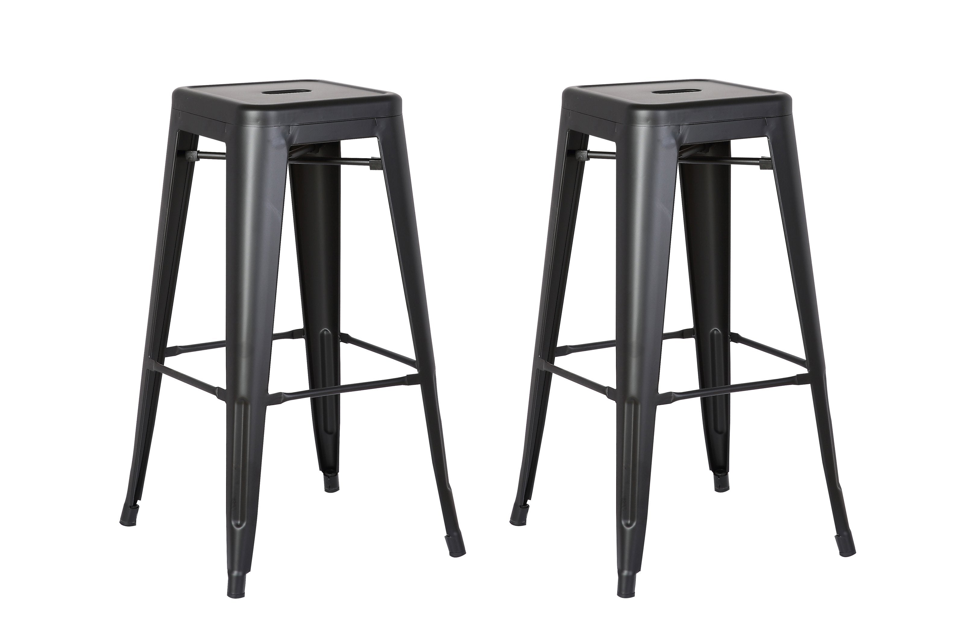 Upgrade your seating with these sleek, backless metal bar stools—designed for modern, industrial, and coastal interiors. Lightweight yet durable, they offer easy stacking for compact storage and a comfortable 30" seat height that fits most bars and kitchen islands. Finished in distressed black, this set of two blends vintage character with practical everyday use in homes, cafes, and commercial spaces.