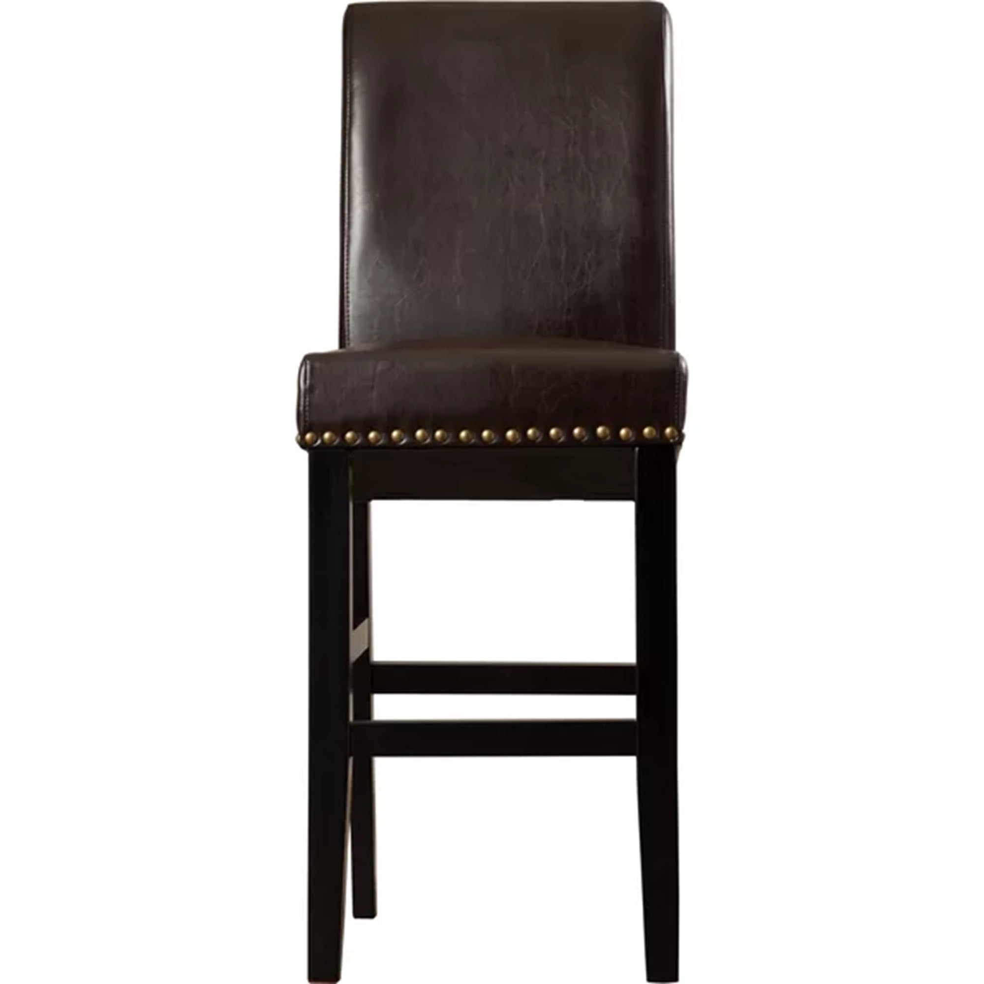 Bring instant warmth and polished style to your kitchen, home bar, or entertainment area with this set of two upholstered counter stools. Thoughtfully designed for comfort and durability, each stool pairs soft brown PU leather upholstery with sturdy black rubberwood legs and elegant gold-tone accents for a versatile look that complements modern and traditional interiors.