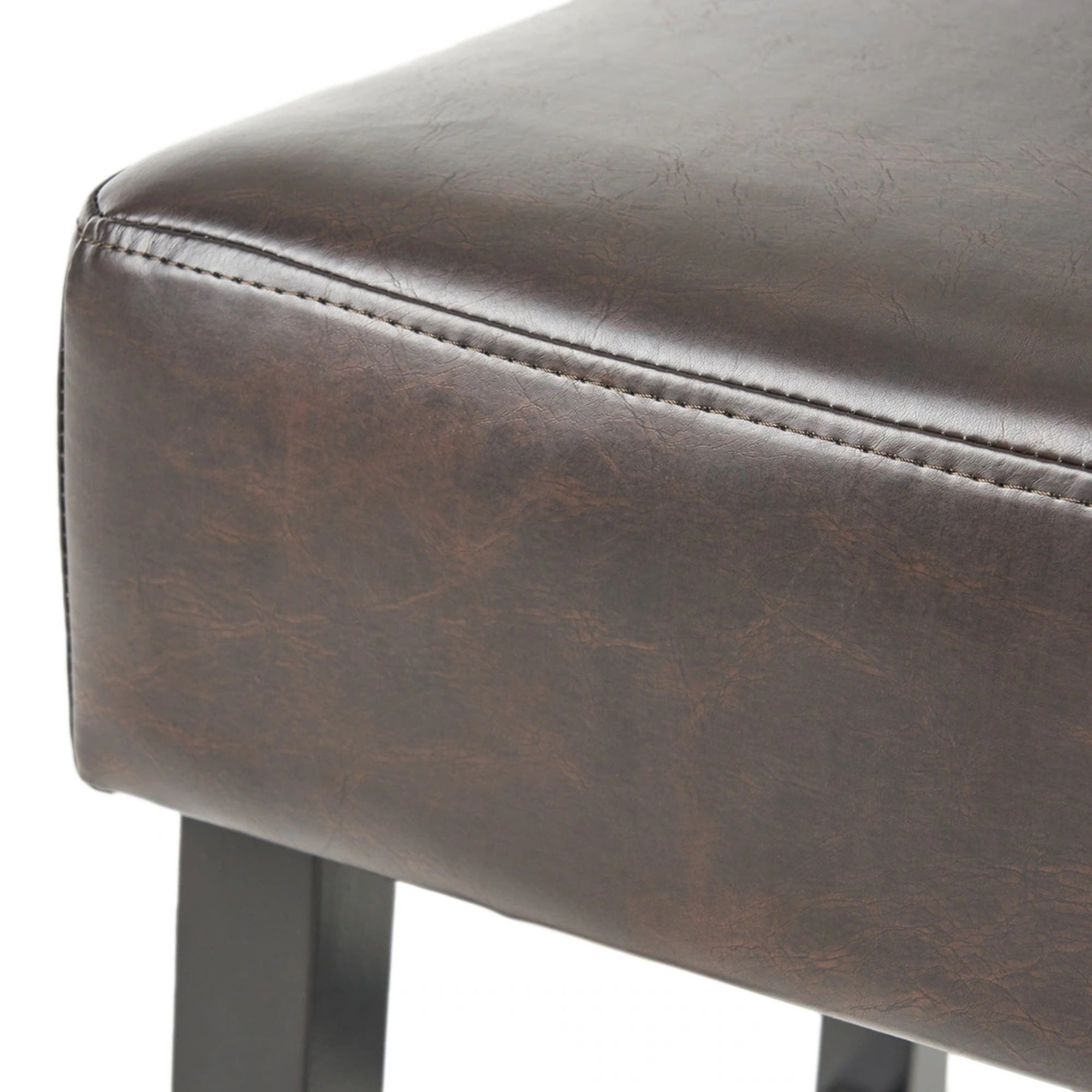 Refresh your kitchen or bar area with this sleek set of two backless counter-height barstools, designed for comfort, durability, and a clean transitional look. Upholstered in easy-care brown faux leather with sturdy metal legs, these stools offer a compact footprint and are ideal for casual dining, islands, or entertaining spaces.