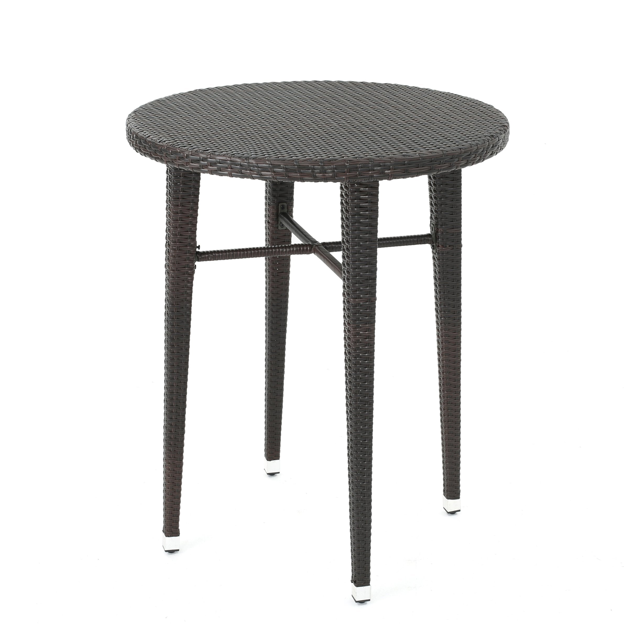 Enjoy leisurely outdoor gatherings around this elegant rattan round bar table — a charming, weather-ready centerpiece that combines cafe-style appeal with durable construction. Designed for patios, decks, gardens, and poolside lounges, it offers a convenient surface for drinks, snacks, and decor while elevating your outdoor ambiance.