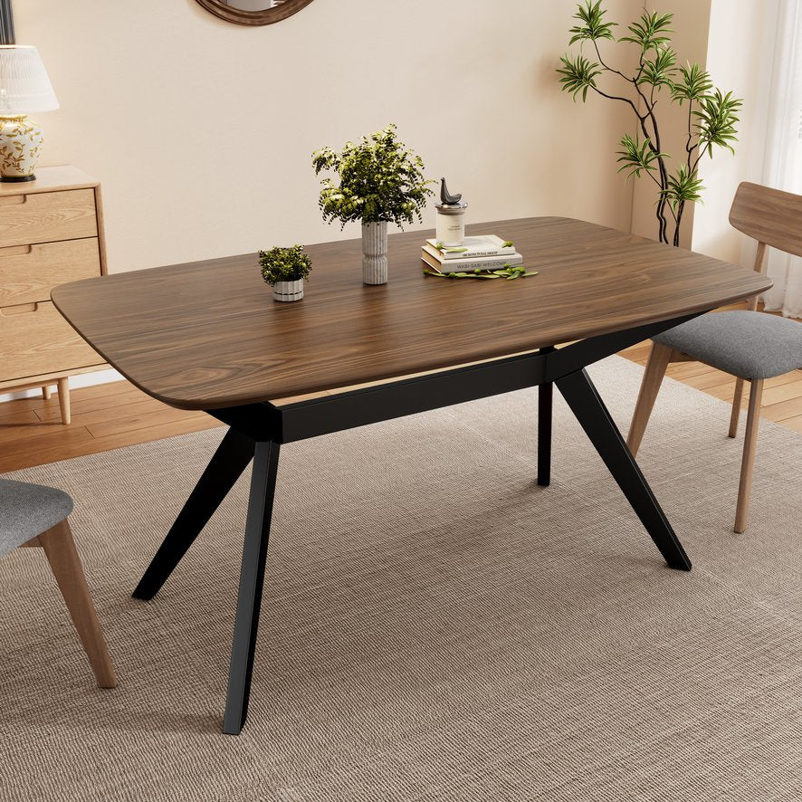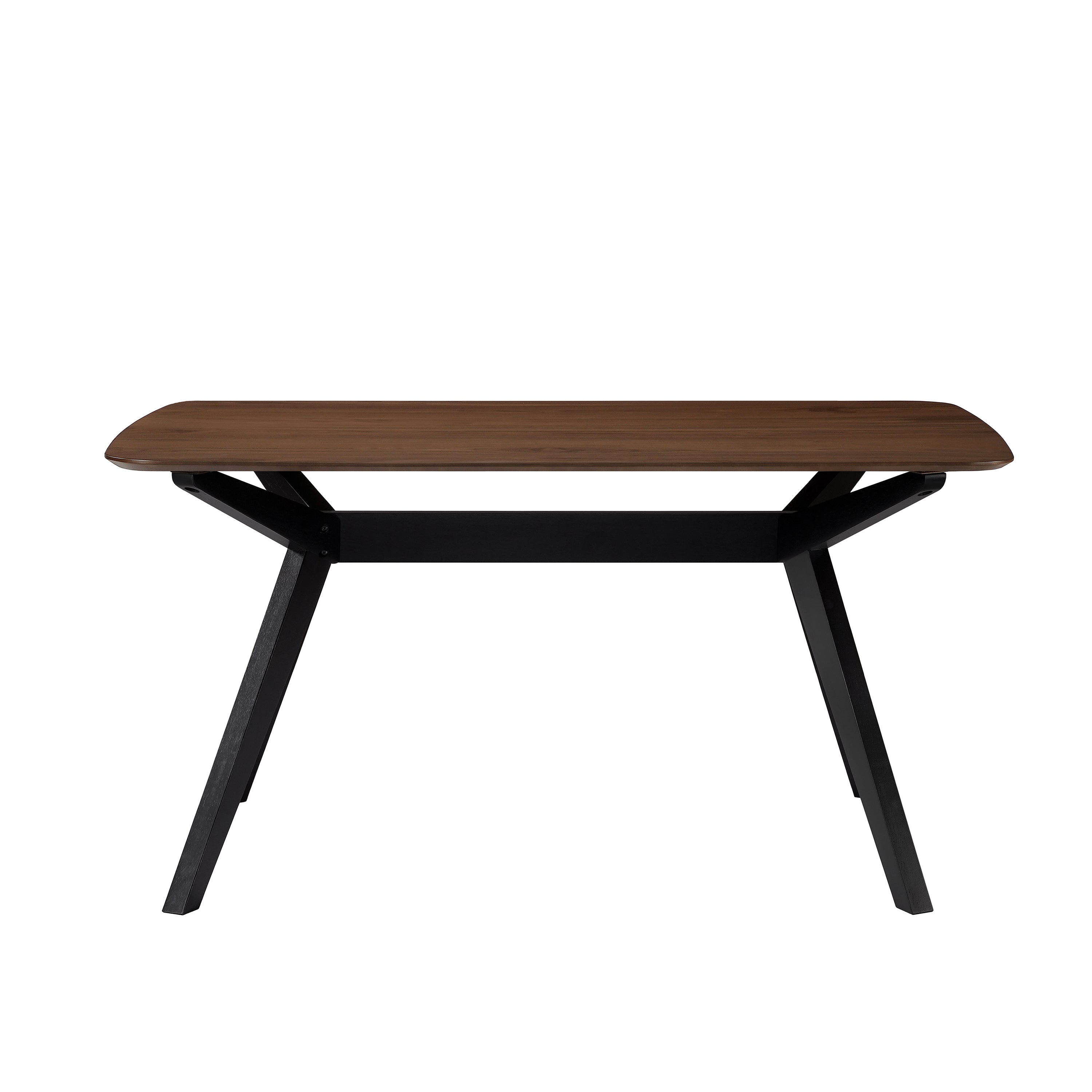 Bring warmth and modern style to your dining area with this Walnut and Black wood dining table. Expertly crafted with durable rubberwood legs and a low-maintenance faux wood tabletop, it balances everyday practicality with a refined, contemporary aesthetic — ideal for family meals, casual entertaining, or as a centerpiece in your dining room.