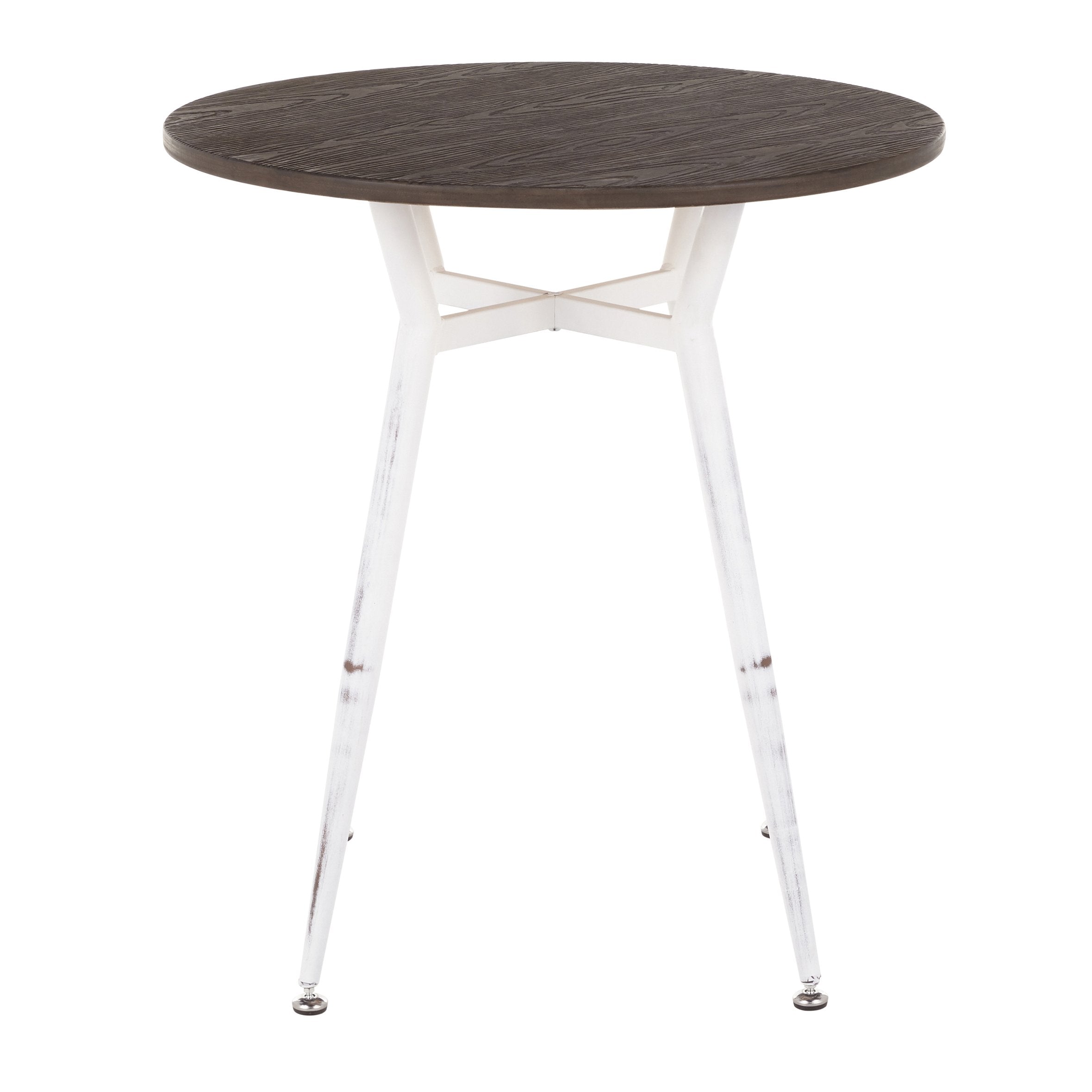 - Materials: Espresso wood-pressed grain bamboo top with vintage white tapered metal legs