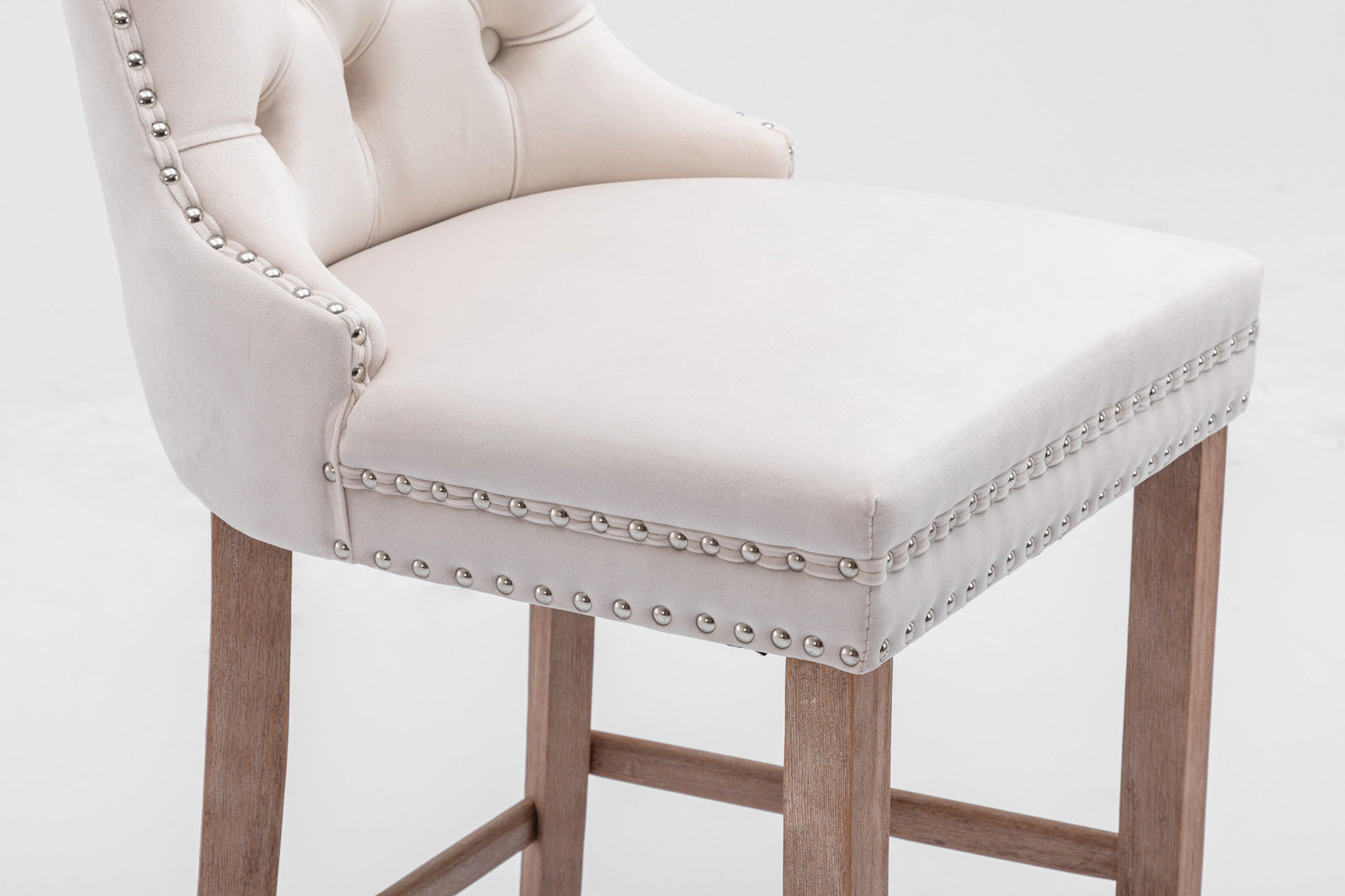 Elevate your home bar or kitchen island with these contemporary velvet upholstered barstools that blend modern elegance and everyday comfort. Featuring button-tufted backs, chrome nailhead trim, and sturdy wooden legs, this set of 2 delivers refined styling and reliable performance for casual dining, entertaining, or breakfast nooks.