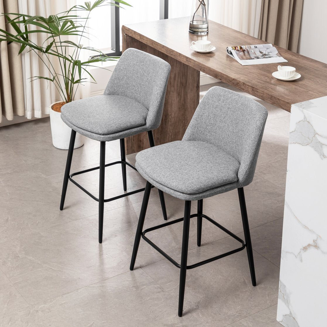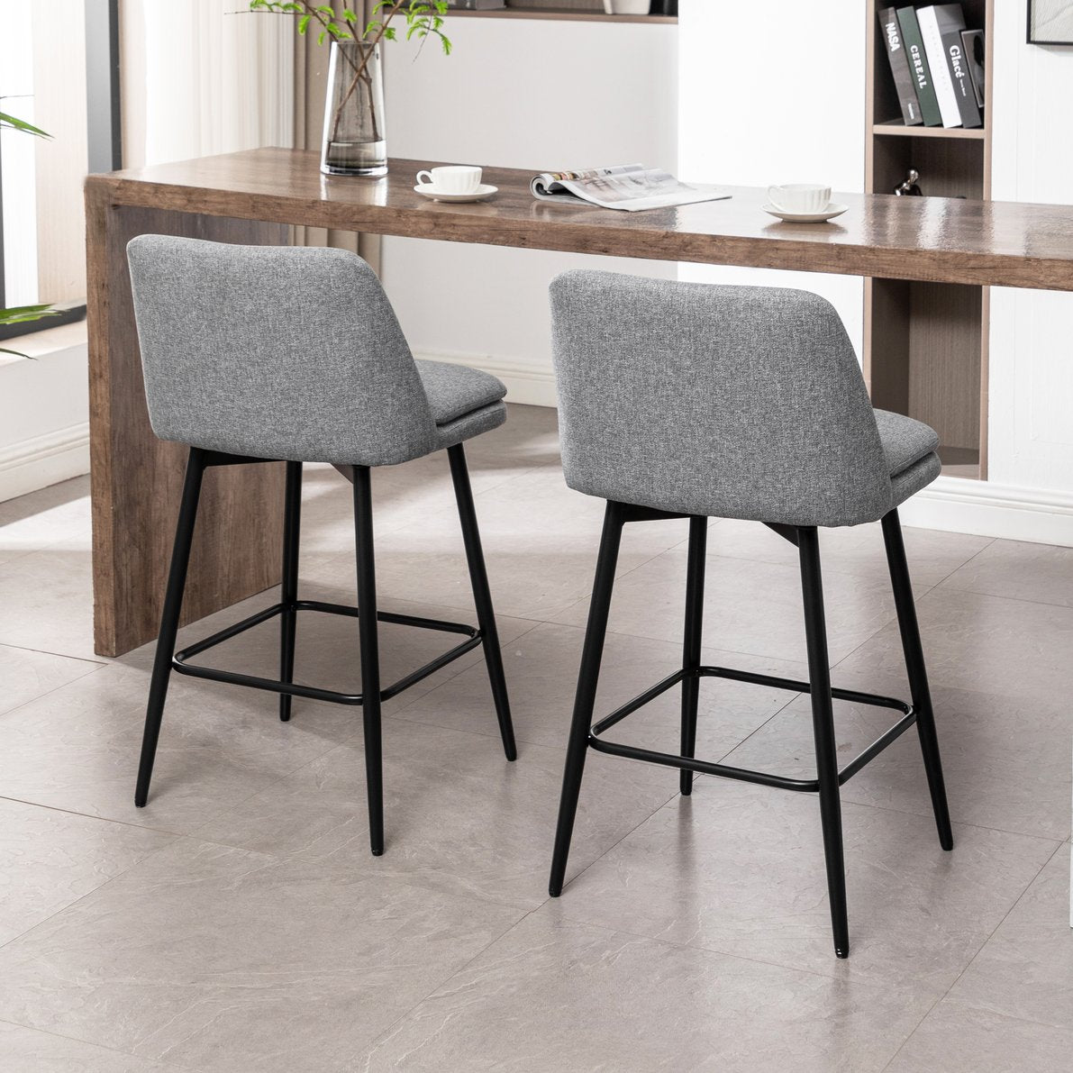 Elevate your kitchen island or home bar with these refined counter-height swivel stools that blend mid-century modern style with everyday comfort. Upholstered in light grey linen and supported by sturdy matte-black metal legs, each stool offers 360° swivel convenience and thoughtful ergonomics for relaxed dining, entertaining, or casual work.
