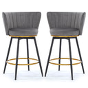 Bring mid-century charm and modern comfort to your kitchen island or home bar with this elegant set of two counter-height swivel bar stools. Upholstered in soft gray velvet with supportive backs and a sturdy iron frame, these stools combine style and durability for everyday use. The 360° swivel and cushioned seat keep conversations flowing, while the integrated footrest and ergonomic design ensure lasting comfort during meals or entertaining.