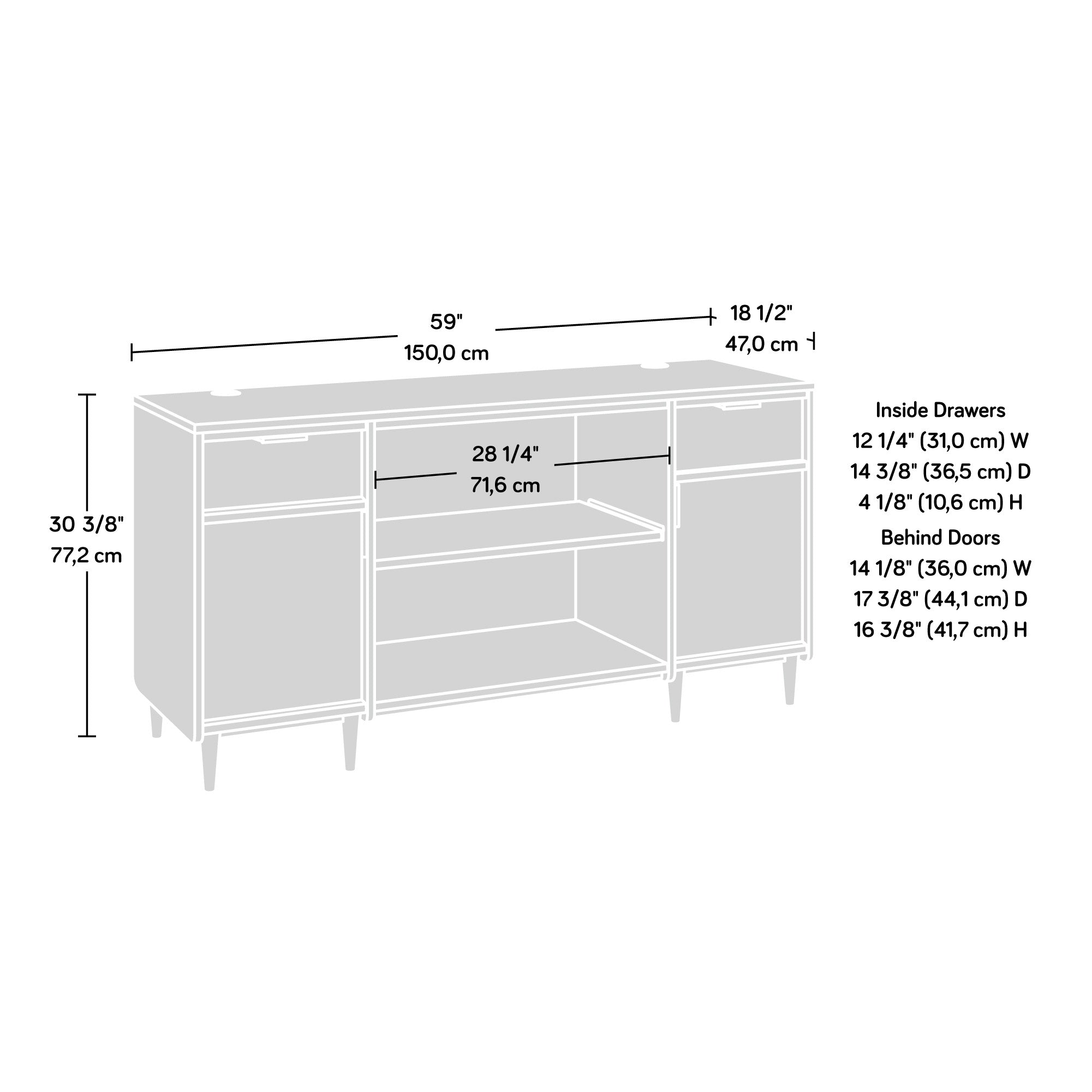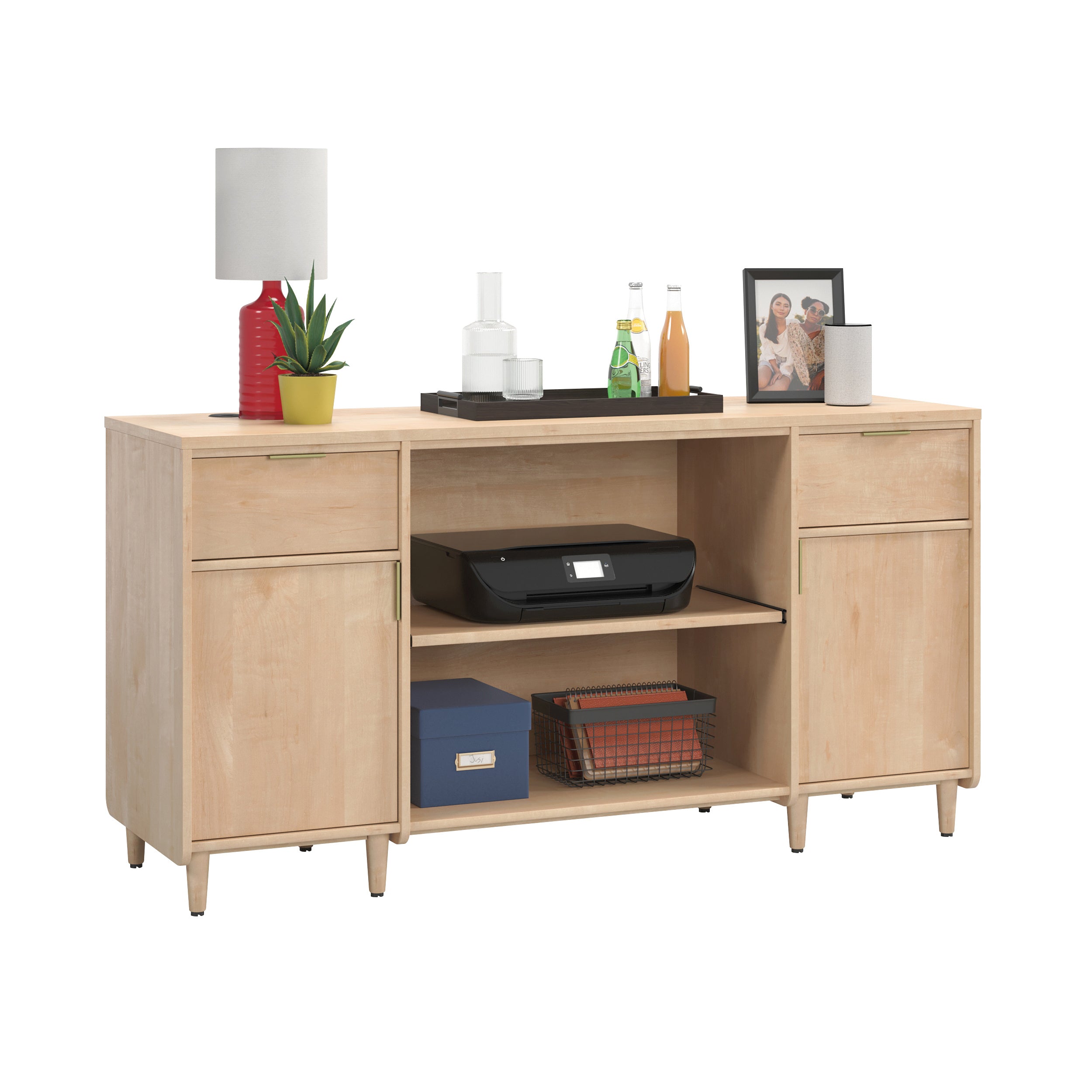 This elegant maple-finish credenza combines a clean, contemporary silhouette with practical storage — perfect for anchoring a living room, entryway, or home office. Its spacious top accommodates decor and media components, while thoughtful details like cord management and adjustable shelving keep your space organized and adaptable to changing needs.