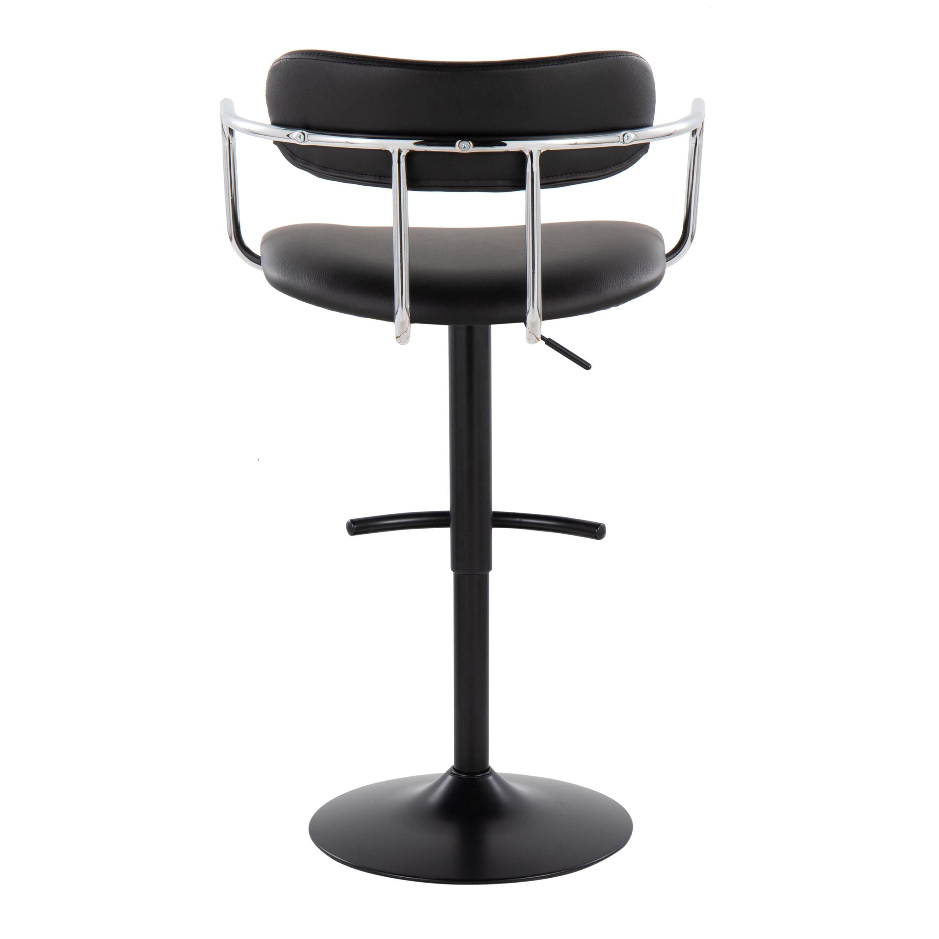 Bring modern glamour to your kitchen or home bar with these Demi adjustable barstools from LumiSource. Combining sleek black metal, grey faux leather upholstery, and a comfortable open-back design, this pair offers smooth 360° swivel action, easy height adjustment, and a supportive rounded T footrest — perfect for casual dining, entertaining, or a stylish seating upgrade.