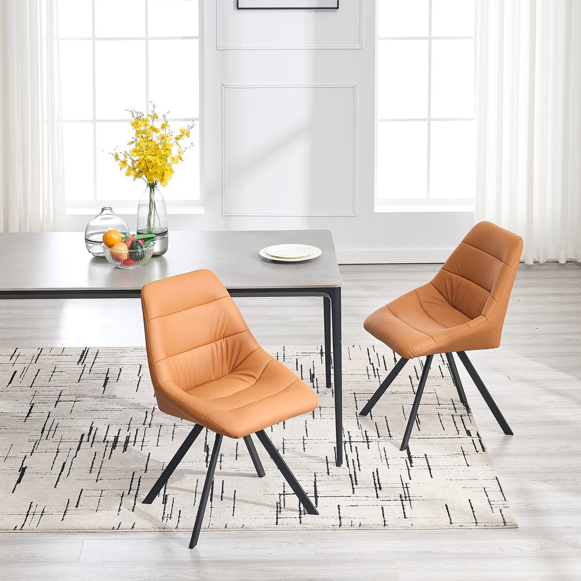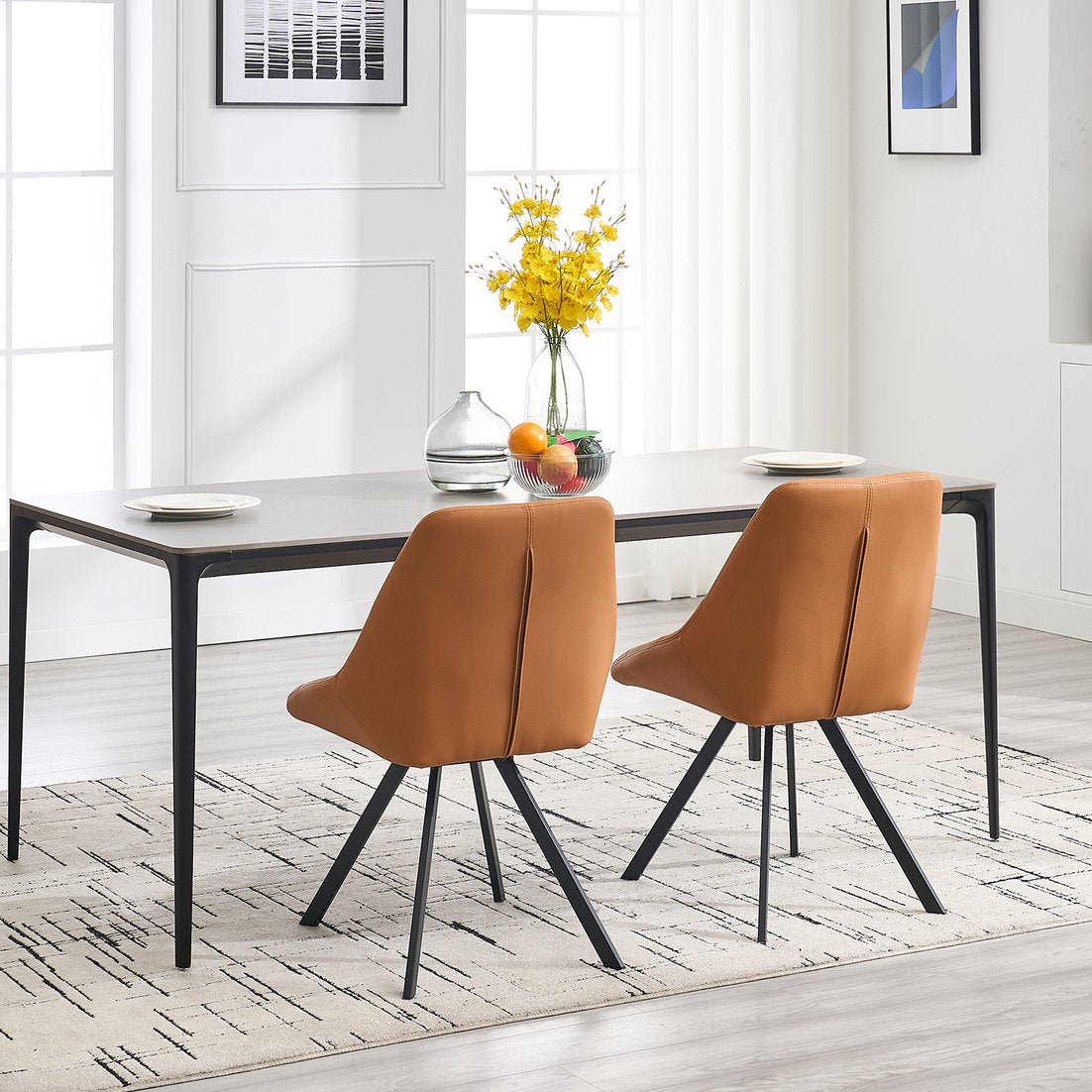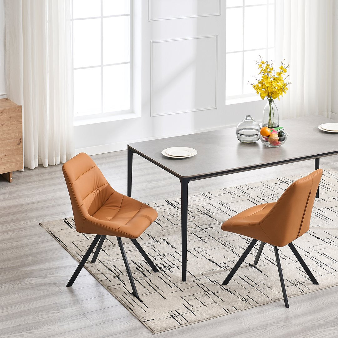 Create a cozy, modern dining corner with these thickly upholstered fabric chairs designed for comfort and everyday use. Their streamlined silhouette and sturdy metal legs blend contemporary style with practical durability, making them ideal for dining rooms, kitchens, breakfast nooks, or as accent seating.