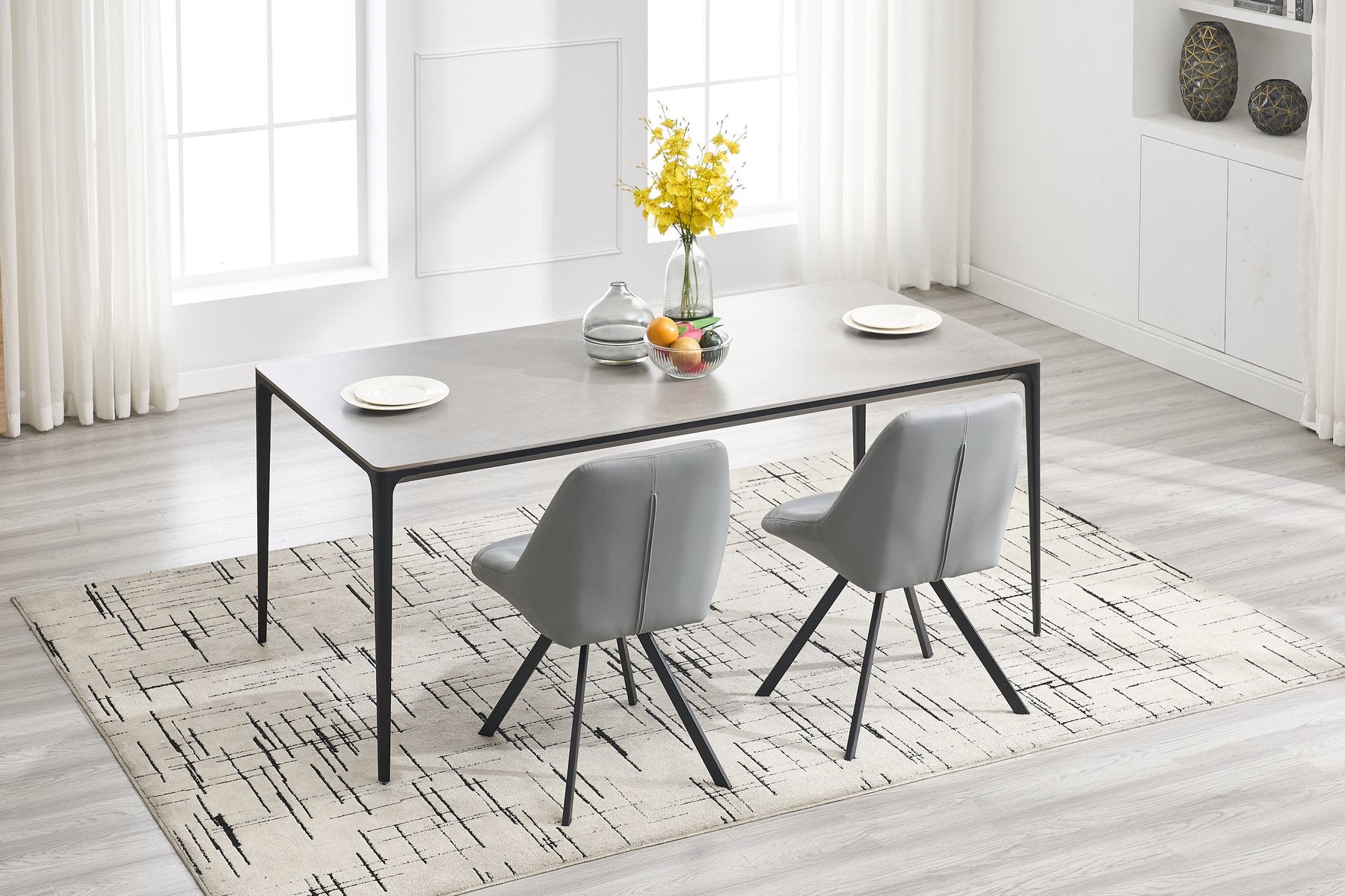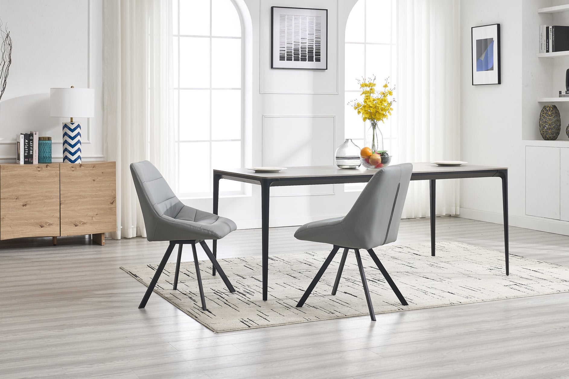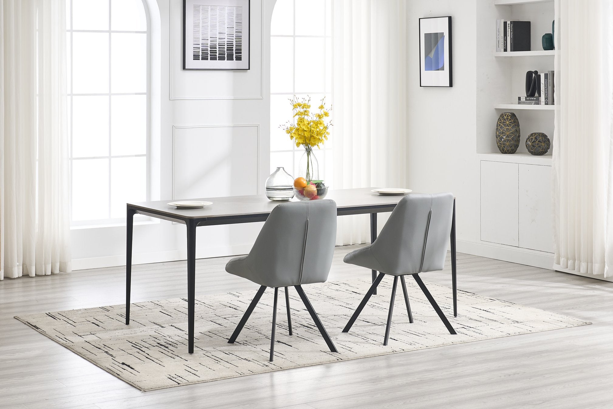 Create a cozy, modern dining corner with these thickly upholstered fabric chairs designed for comfort and everyday use. Their streamlined silhouette and sturdy metal legs blend contemporary style with practical durability, making them ideal for dining rooms, kitchens, breakfast nooks, or as accent seating.