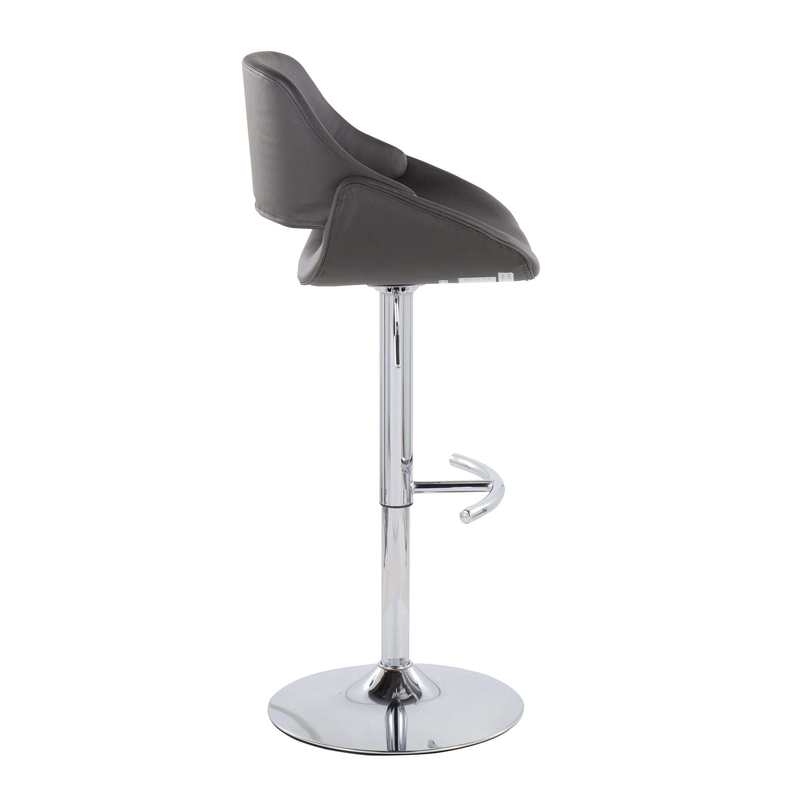 - The wide and welcoming seat of the LumiSource Fabrico Adjustable Bar Stool beckons one to sit and relax. A curved back and contoured upholstered seat is accented by an adjustable chrome base that add to the stylish yet comfortable design. Available in a variety of upholstery colors, choose the one that suits your space best.