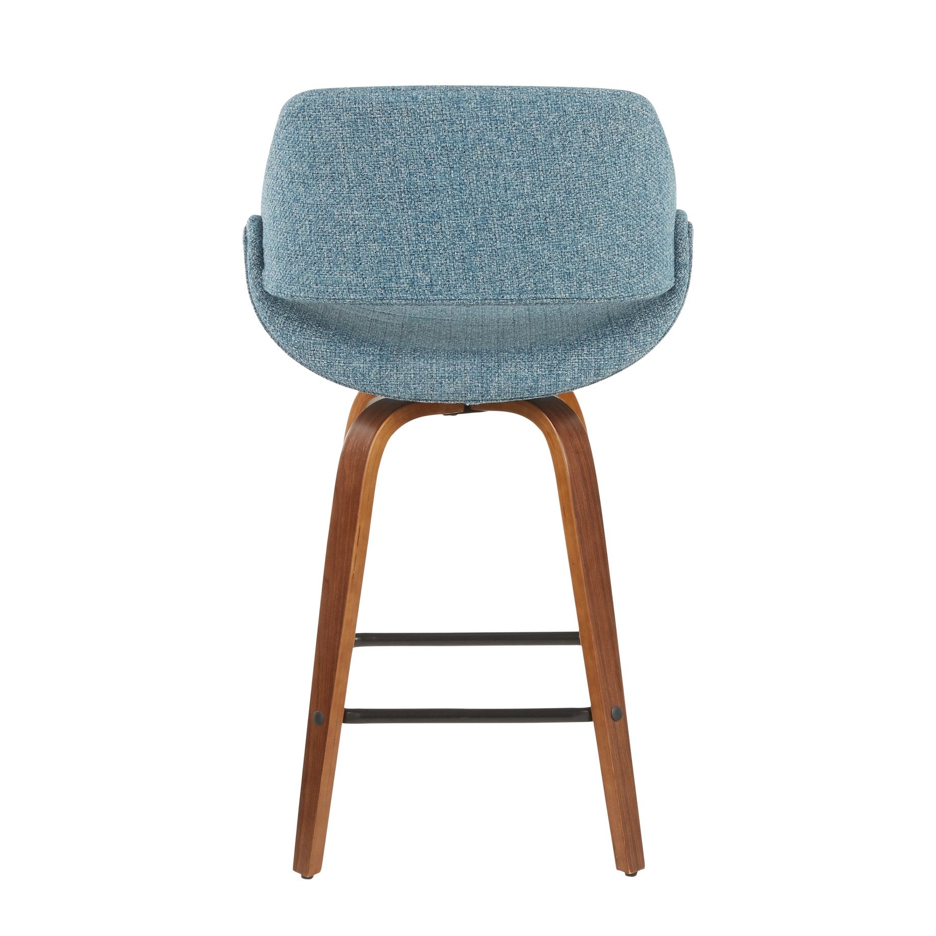 Bring mid-century modern warmth and contemporary comfort to your kitchen or bar area with this set of two Fabrico counter stools. Each stool pairs a curved, padded seat in Blue Noise fabric with flared walnut wood swivel legs for a stylish, inviting silhouette that works in modern, Scandinavian, and transitional interiors.