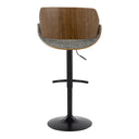 - The wide welcoming seat of the LumiSource Fabrizzi Adjustable Barstool beckons for one to sit and unwind for a while. A scooped, contoured seat and curved back add to its modern yet chic design. With several combinations of color, fabric, and bases, this is an ideal selection for kitchen seating or a home bar.