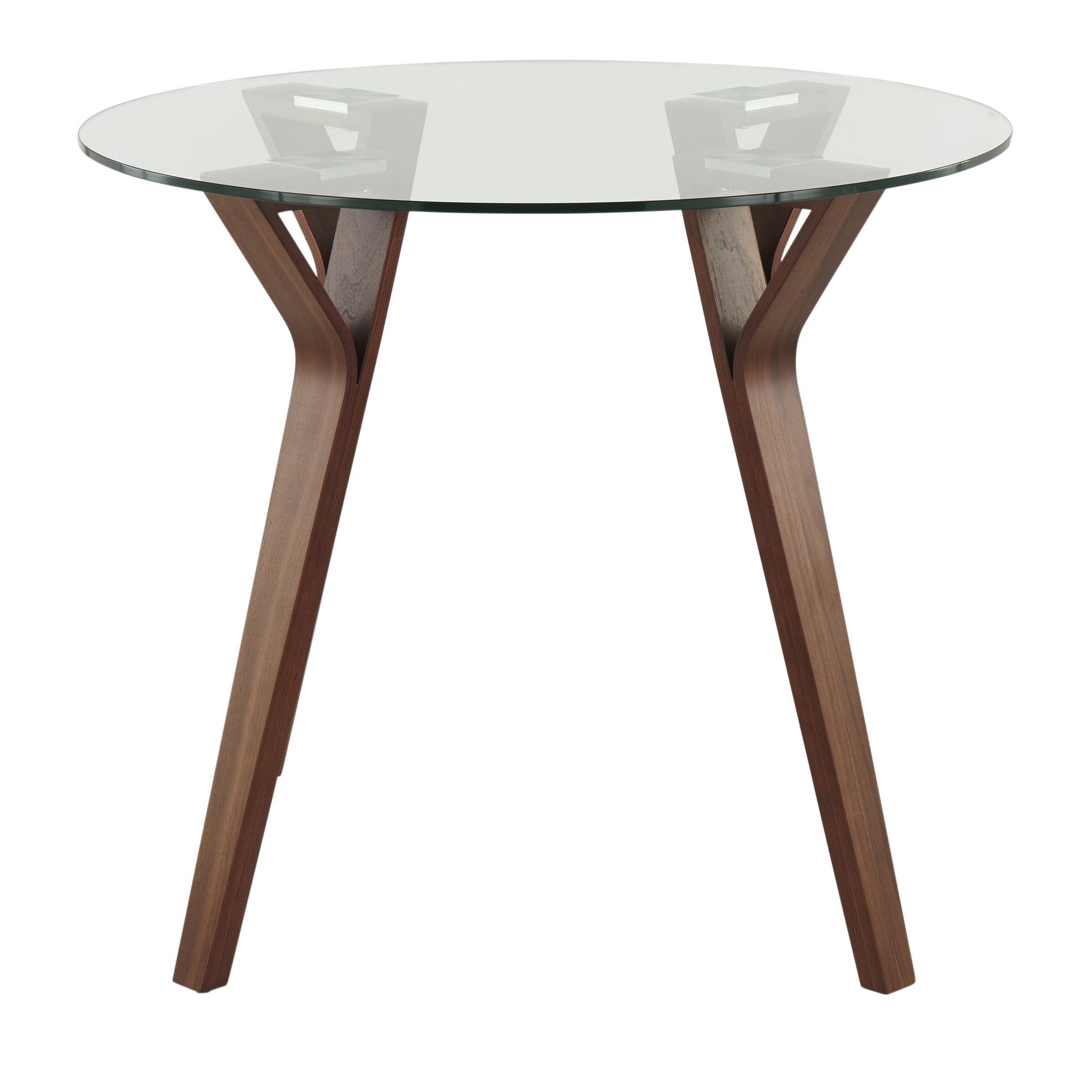 Bring mid-century elegance to your dining nook with this sleek round dinette table. Clean lines, a tempered glass top, and warm walnut-finish bent wood legs combine to create a refined focal point for casual meals, coffee breaks, or conversation. Thoughtful proportions and sturdy construction make it both stylish and functional for everyday use.