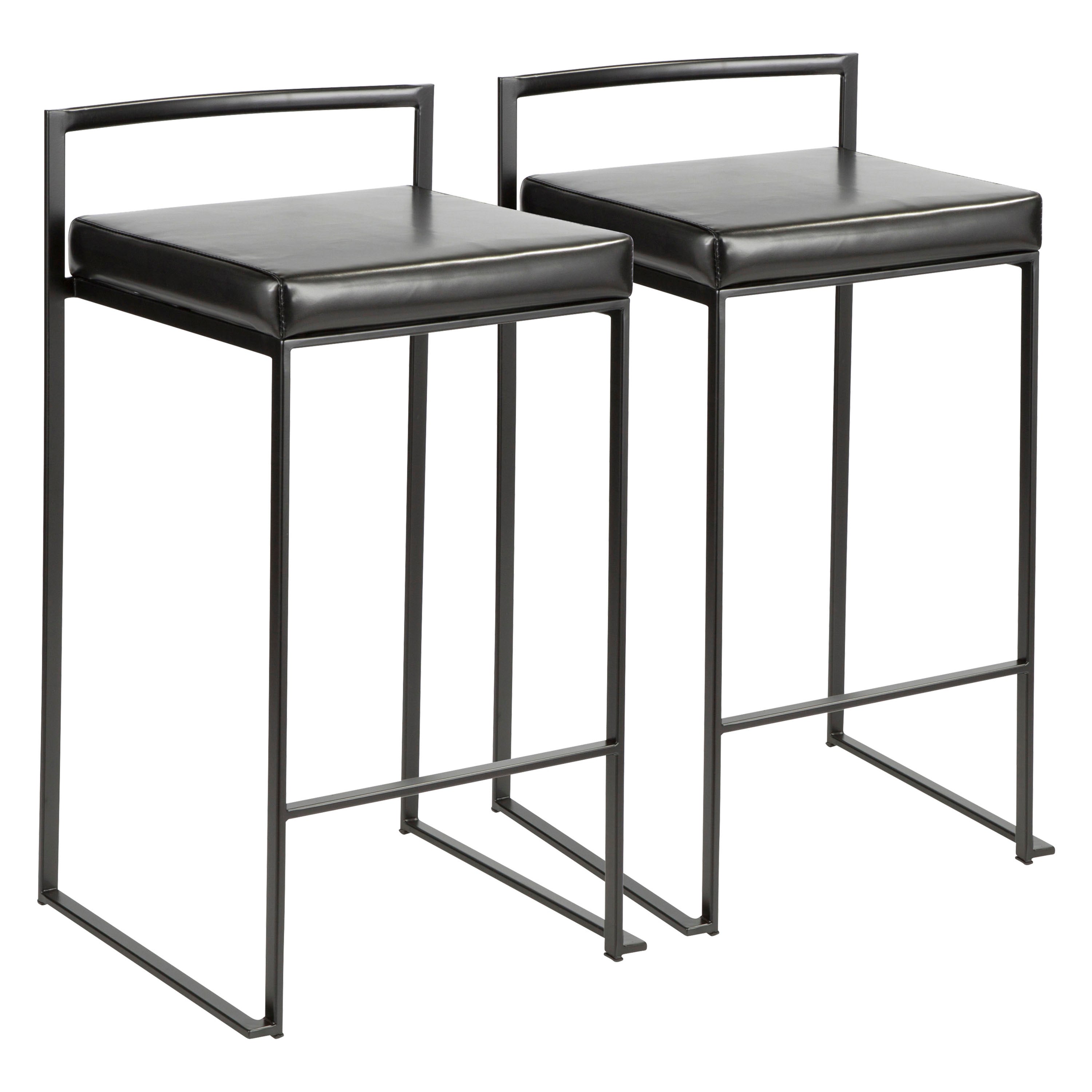 Update your kitchen or bar area with a modern, space-saving seating solution that combines sleek design with everyday comfort. These Fuji counter stools pair thin-profile metal frames with plush faux leather cushions to deliver contemporary style, reliable support, and convenient stackable storage—ideal for apartments, entertainment spaces, or casual dining.