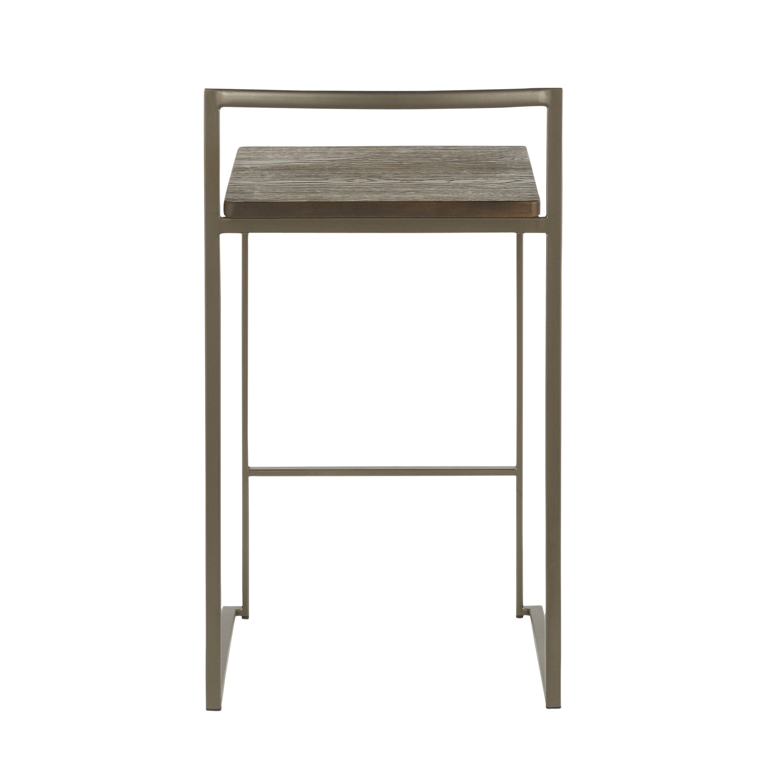 Bring industrial charm and practical comfort to your kitchen or bar with these Fuji counter stools. Clean lines, a durable welded frame, and an espresso wood-pressed grain bamboo seat combine for a modern, versatile look that stacks for easy storage — ideal for everyday use and entertaining.