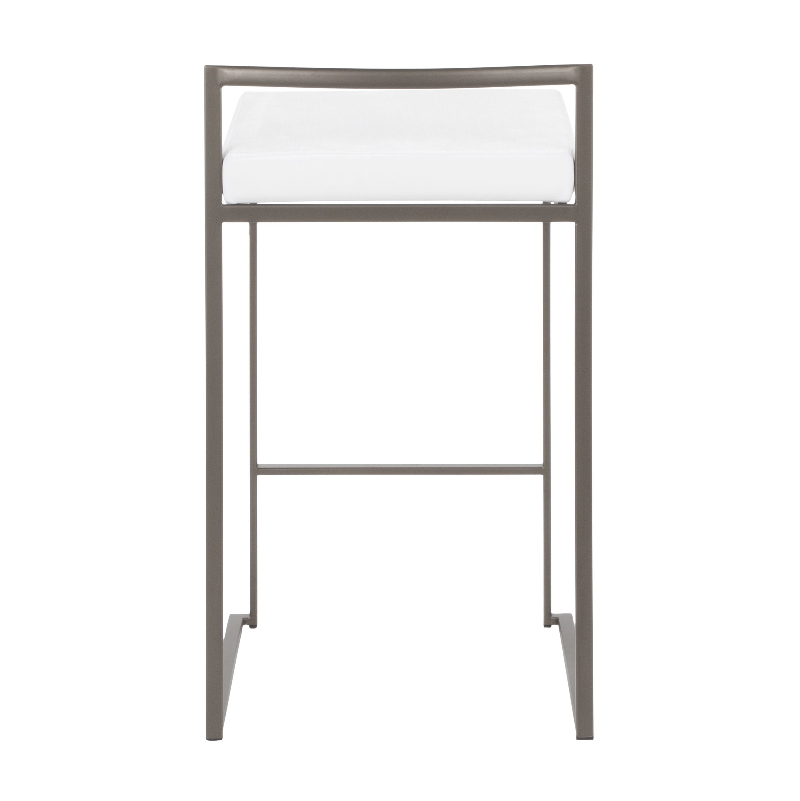Bring industrial elegance and modern comfort to your kitchen, bar, or dining nook with this pair of Fuji counter stools. Their slim, fully welded frames and sumptuous white velvet cushions offer a refined, contemporary look while remaining durable and practical—stackable for easy storage and perfectly suited for entertaining or everyday use.