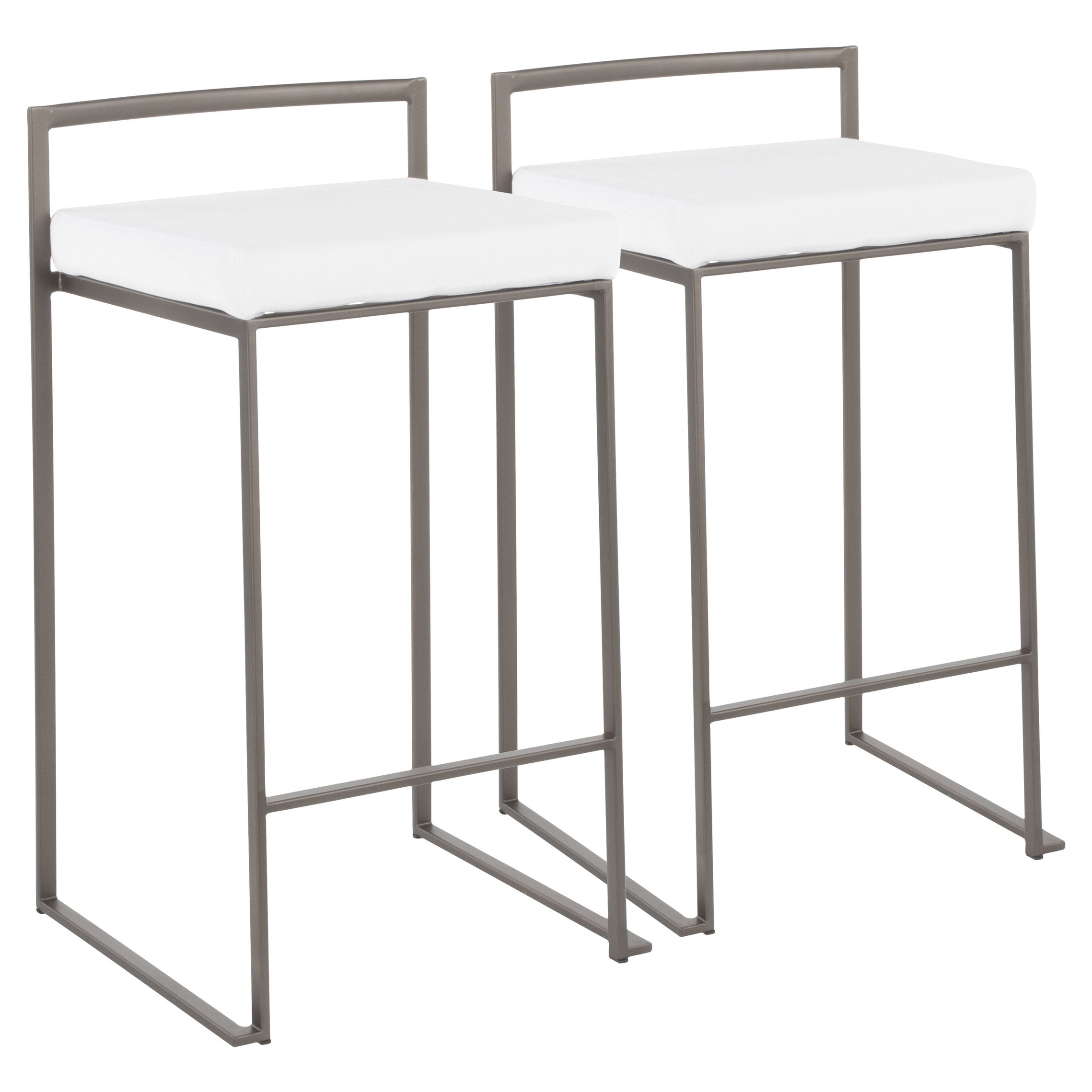 - The simple elegance of the original design LumiSource Fuji Stacker Counter Stool belies its astonishing comfort. Lightweight thin lines create a simplistic fully assembled frame and backrest to support a thick padded seat cushion. A stackable design for easy storage makes this a great stool for entertaining. With its simple stylishness, the Fuji is sure to match any decor. Available in many color combinations, choose the look that best fits your dining space.