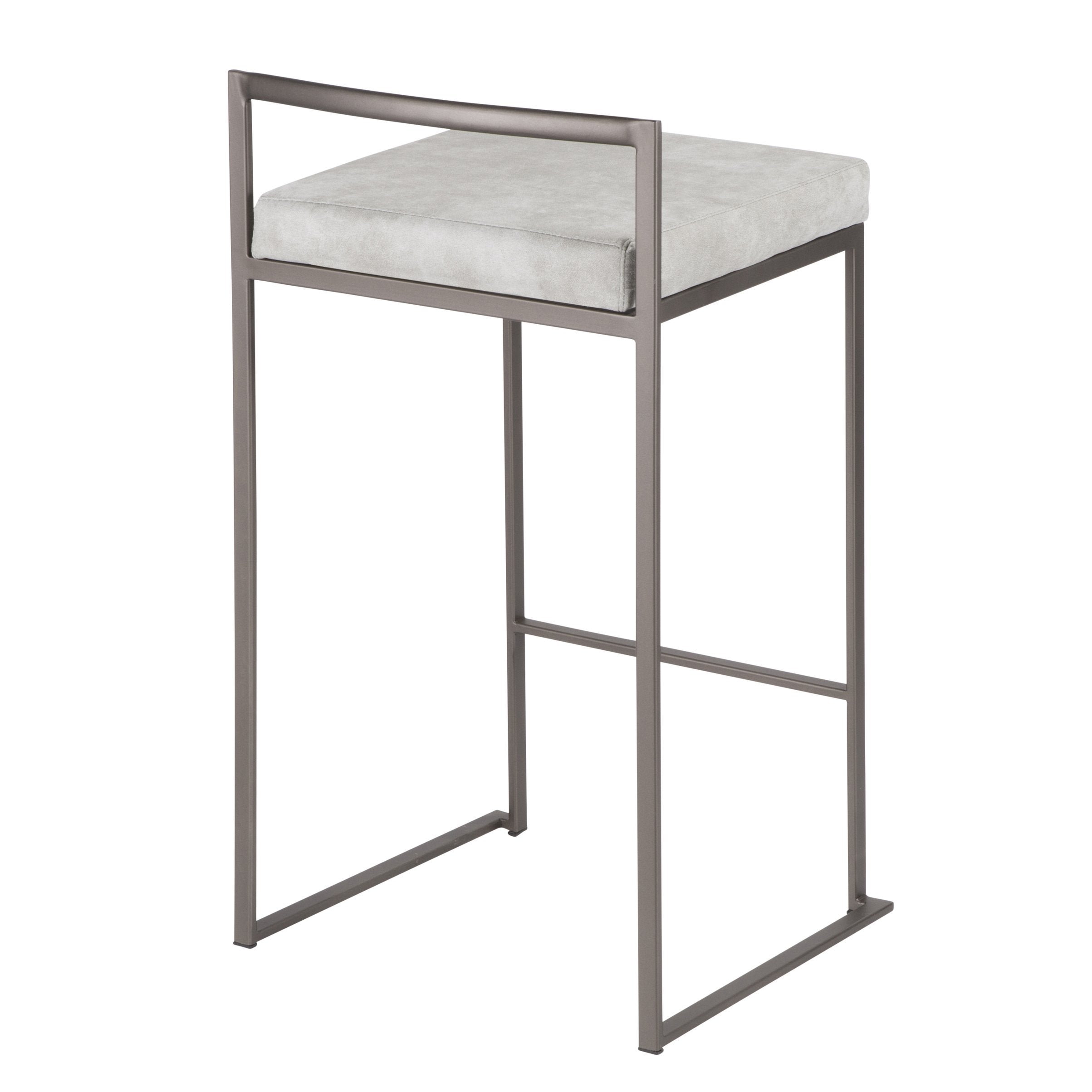 - The simple elegance of the original design LumiSource Fuji Stacker Counter Stool belies its astonishing comfort. Lightweight thin lines create a simplistic fully assembled frame and backrest to support a thick padded seat cushion. A stackable design for easy storage makes this a great stool for entertaining. With its simple stylishness, the Fuji is sure to match any decor. Available in many color combinations, choose the look that best fits your dining space.