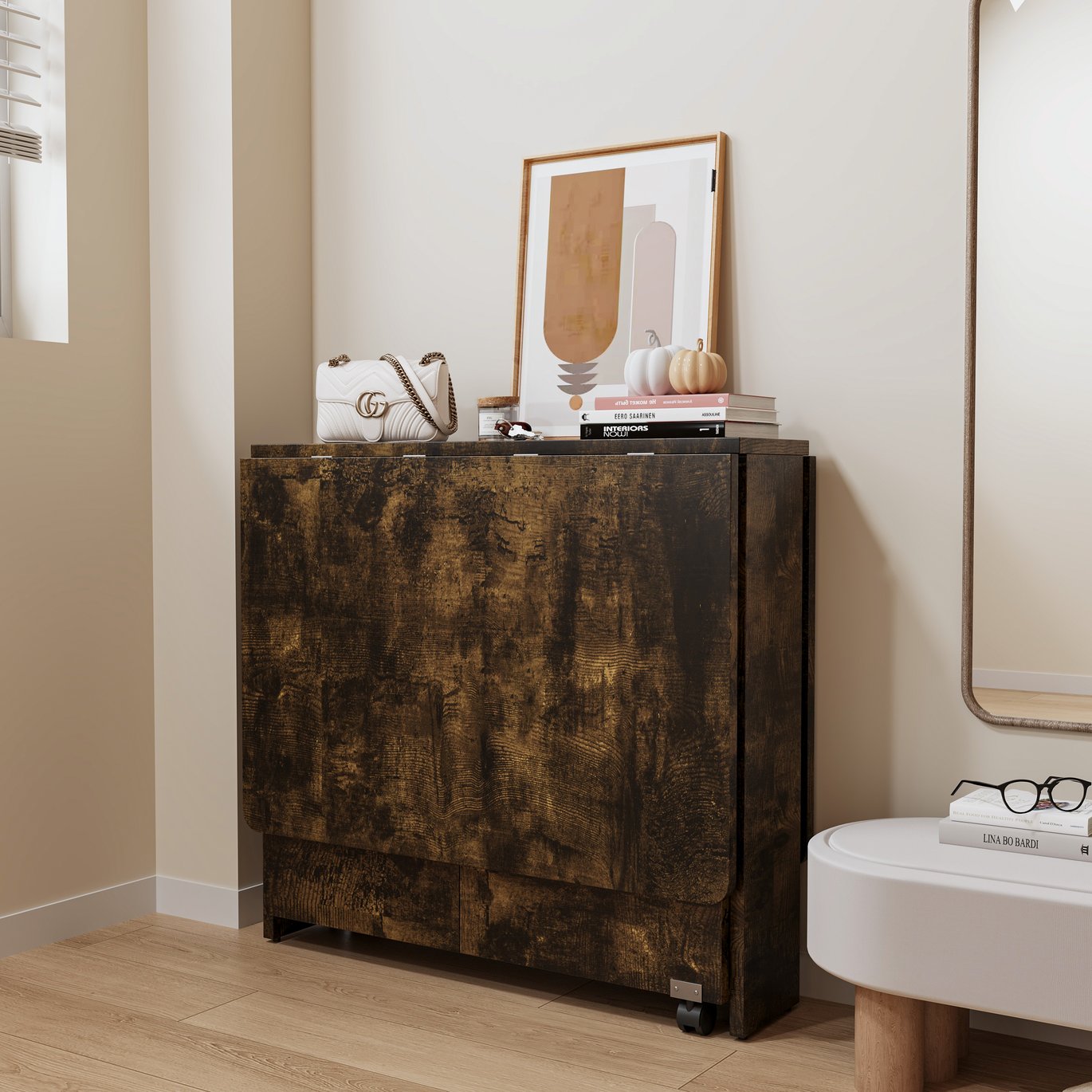 - This black brown folding table can be fully unfolded, half folded, and fully folded. Full length 51.18 inches, can accommodate 5-6 people, suitable for friends, family dinner