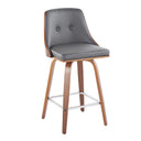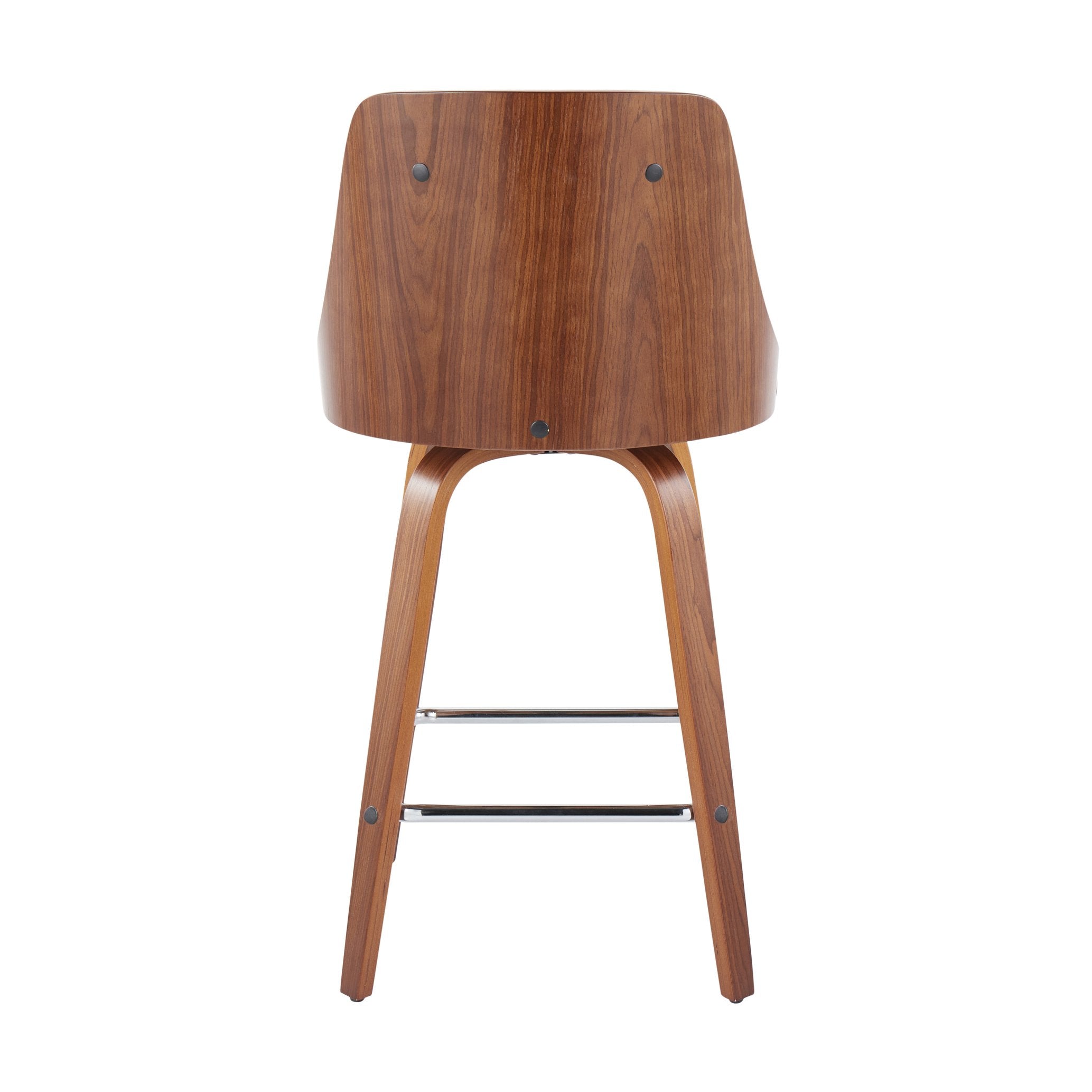 Bring mid-century charm and practical comfort to your kitchen or bar with the Gianna counter stool set. Designed with a contoured wooden back, tapered walnut-finish legs, and a dual-tufted faux leather seat, these fixed-height swivel stools blend heritage styling with modern functionality. Ideal for casual dining, entertaining, or a home bar, the Gianna stools are sold in pairs and finished to coordinate with contemporary decor.