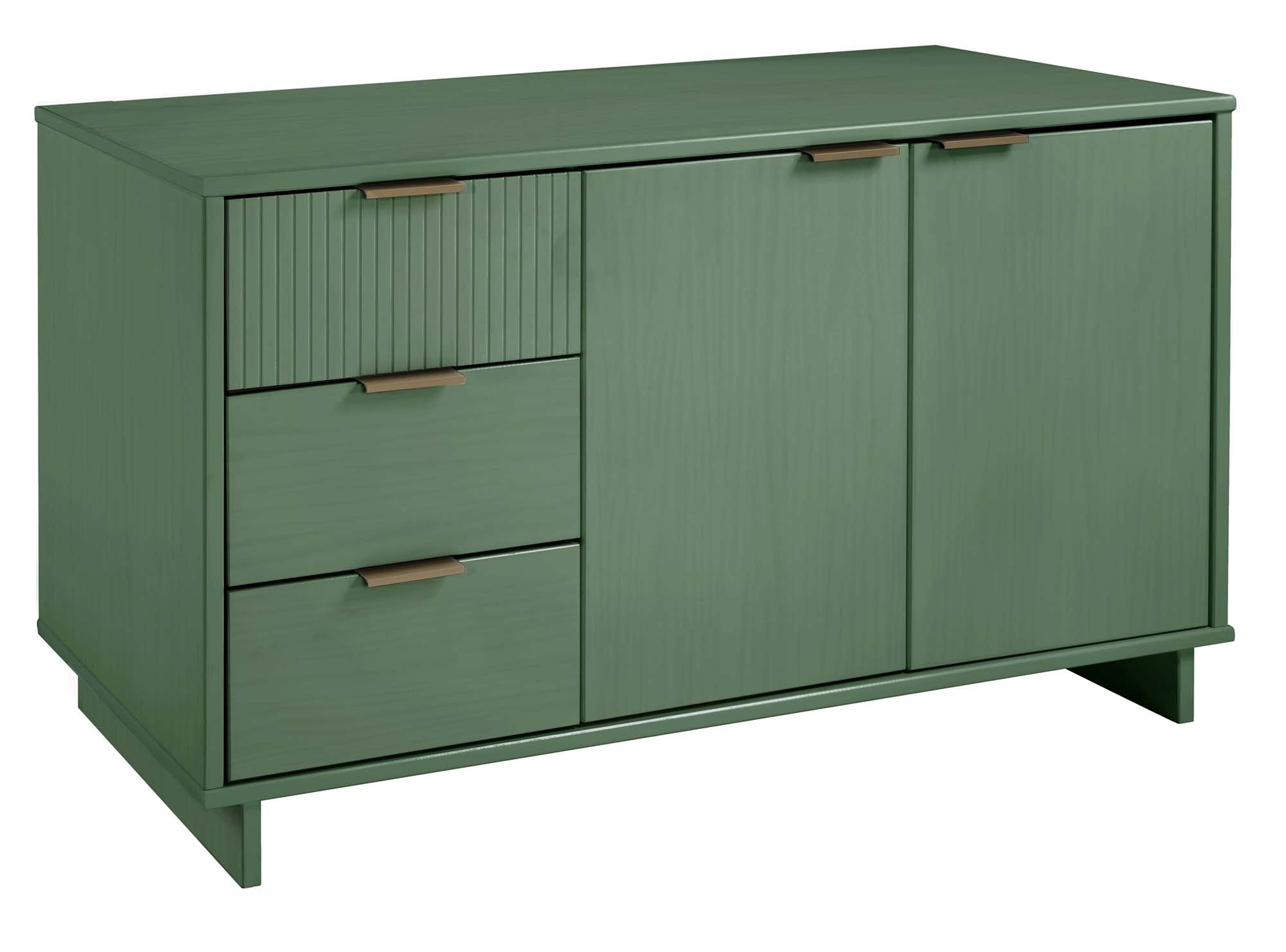 - Drawer Design: Top drawer features vertical textured ribbed lines and solid wood ribbed drawer front for tactile interest and visual depth.