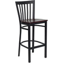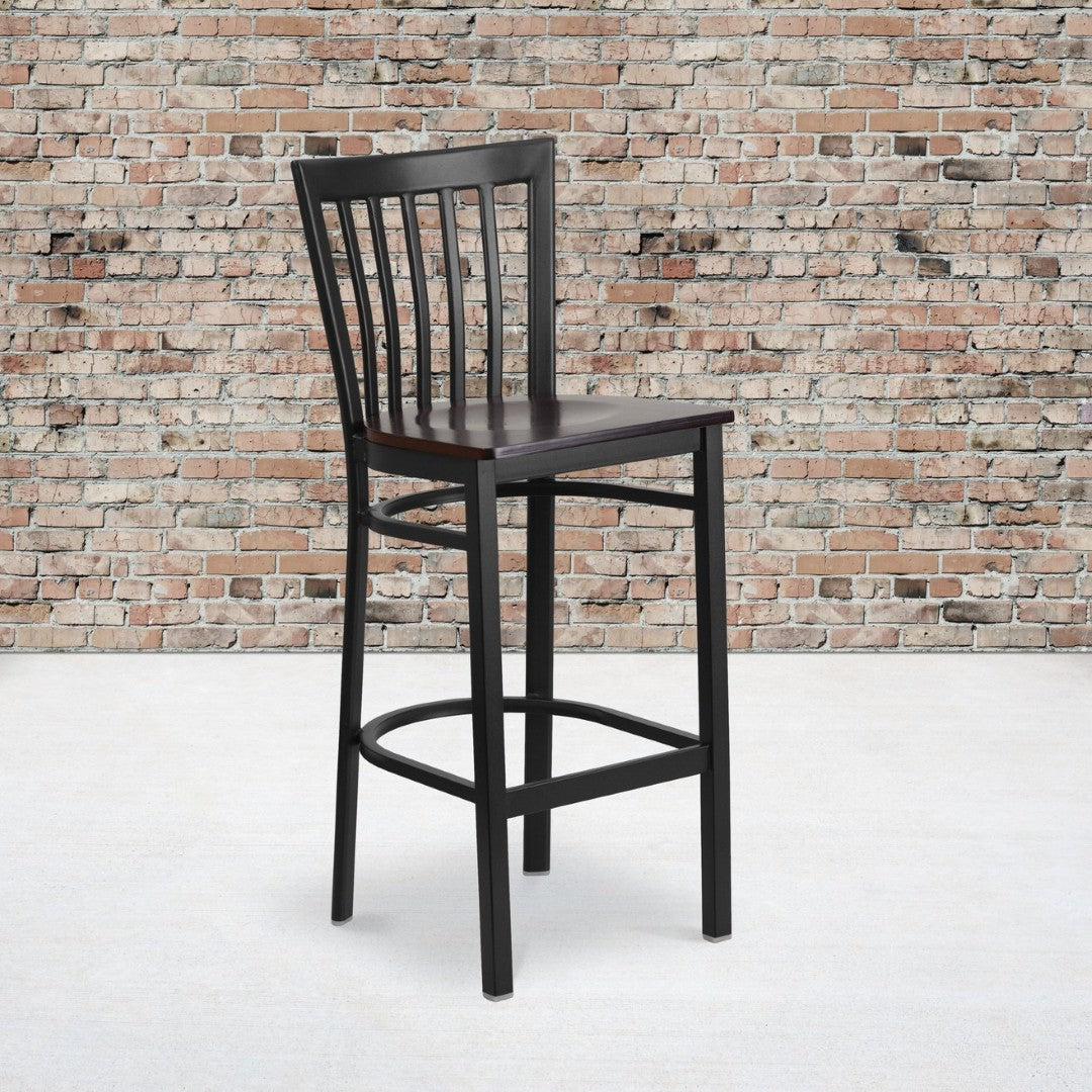 Bring durable, comfortable seating and timeless style to your restaurant, bar, or home with this sturdy school house back metal barstool. Built for high-traffic commercial environments yet refined enough for residential use, it combines heavy-duty construction with a thickly padded vinyl seat for lasting comfort and easy maintenance.