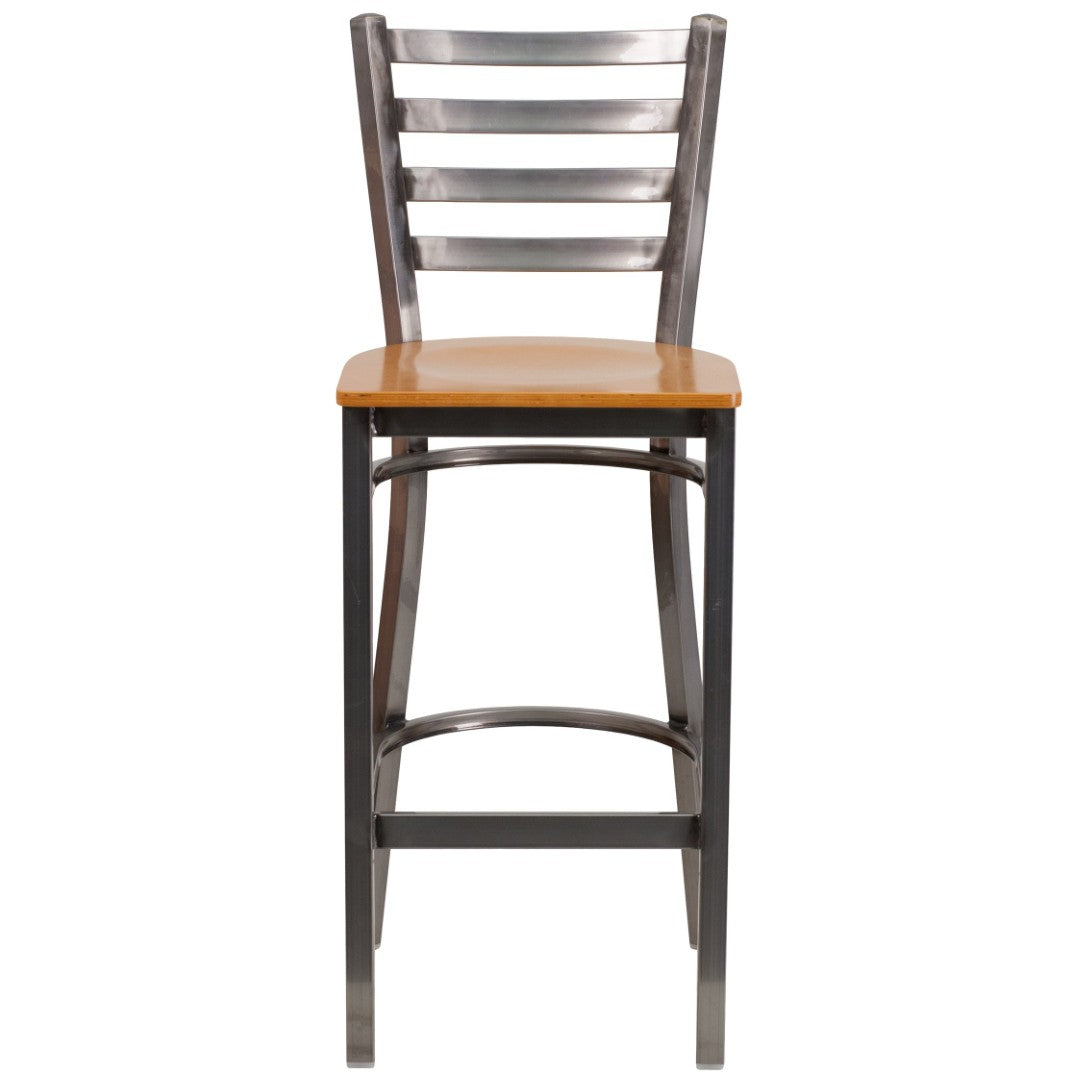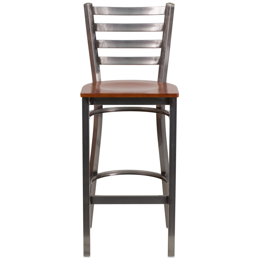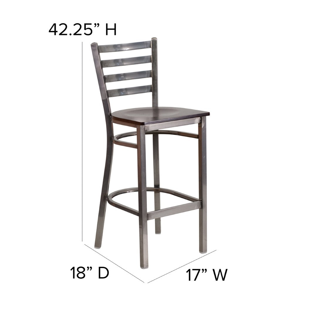Elevate your dining or bar area with a durable, low-maintenance stool that combines commercial-grade strength and everyday comfort. This ladder-back metal barstool pairs a rugged clear-coated metal frame with a thick, cushioned vinyl seat for a professional look that stands up to high-traffic environments while remaining stylish enough for home use.