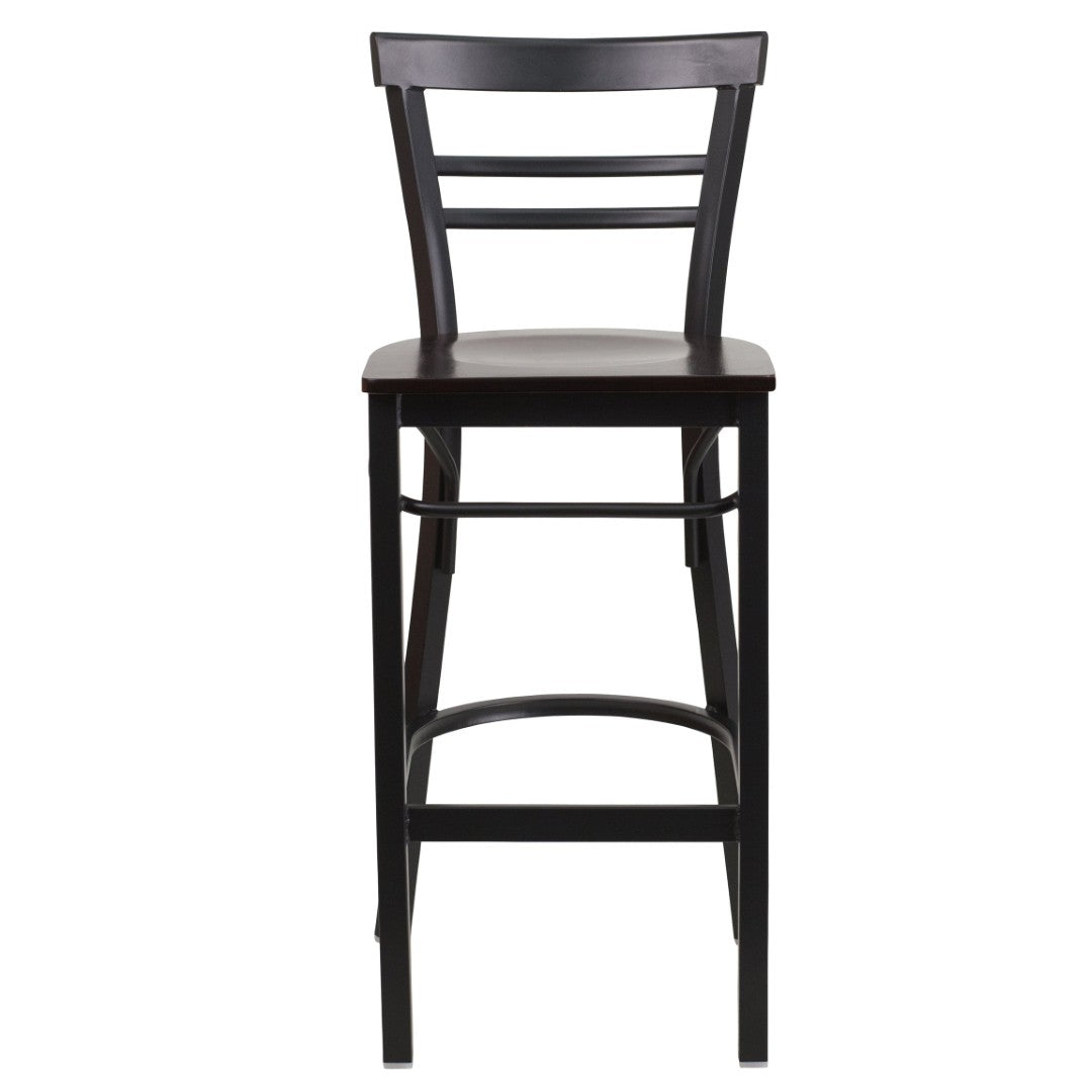Give your dining or bar area a durable, comfortable upgrade with this sleek two-slat ladder back metal barstool. Built for high-traffic commercial use yet styled to suit modern homes, it combines a sturdy steel frame, thickly padded vinyl seat, and practical features that make maintenance easy and guests comfortable. Ideal for restaurants, bars, lounges, and home bars where reliability, easy cleaning, and a classic look are required.