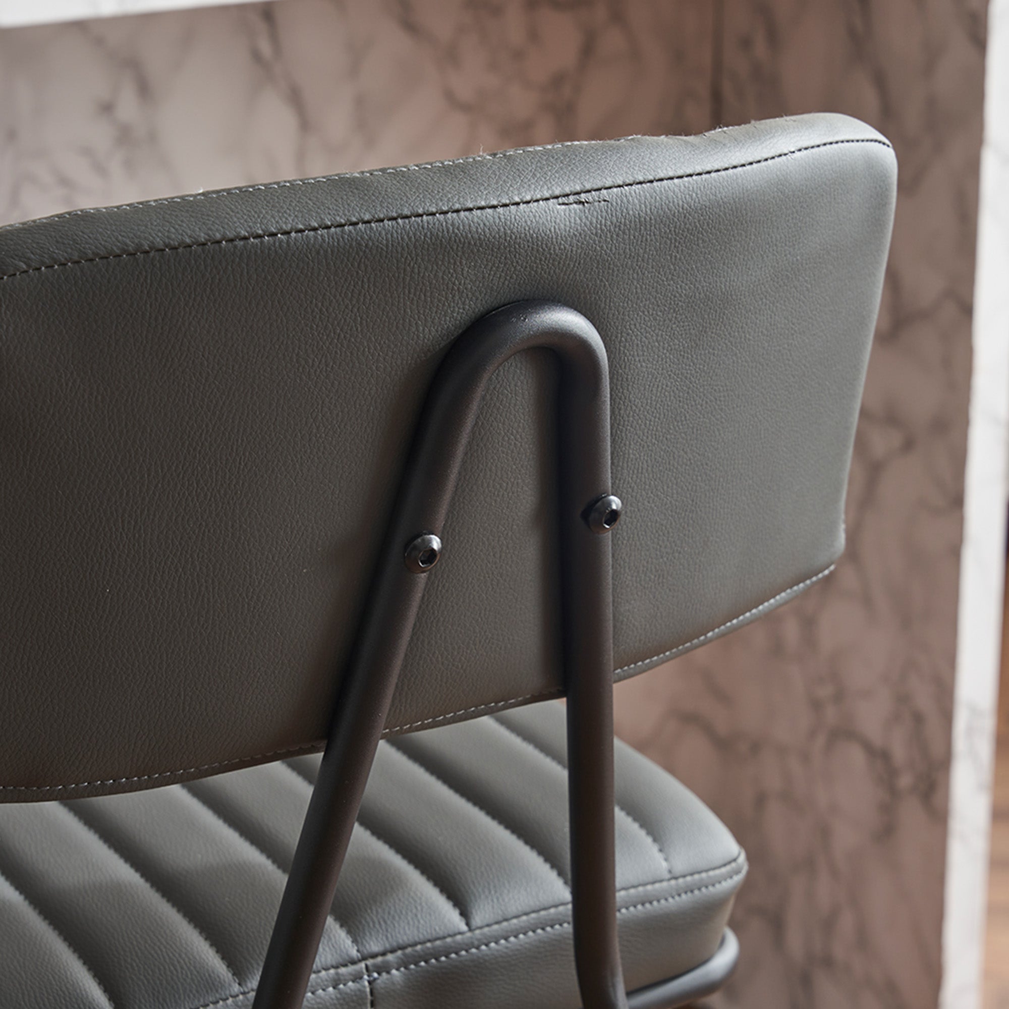 - Comfortable seating: Soft PU leather upholstery over plush padding, vertical stitching for aesthetic detail, and a slightly angled backrest for ergonomic support.