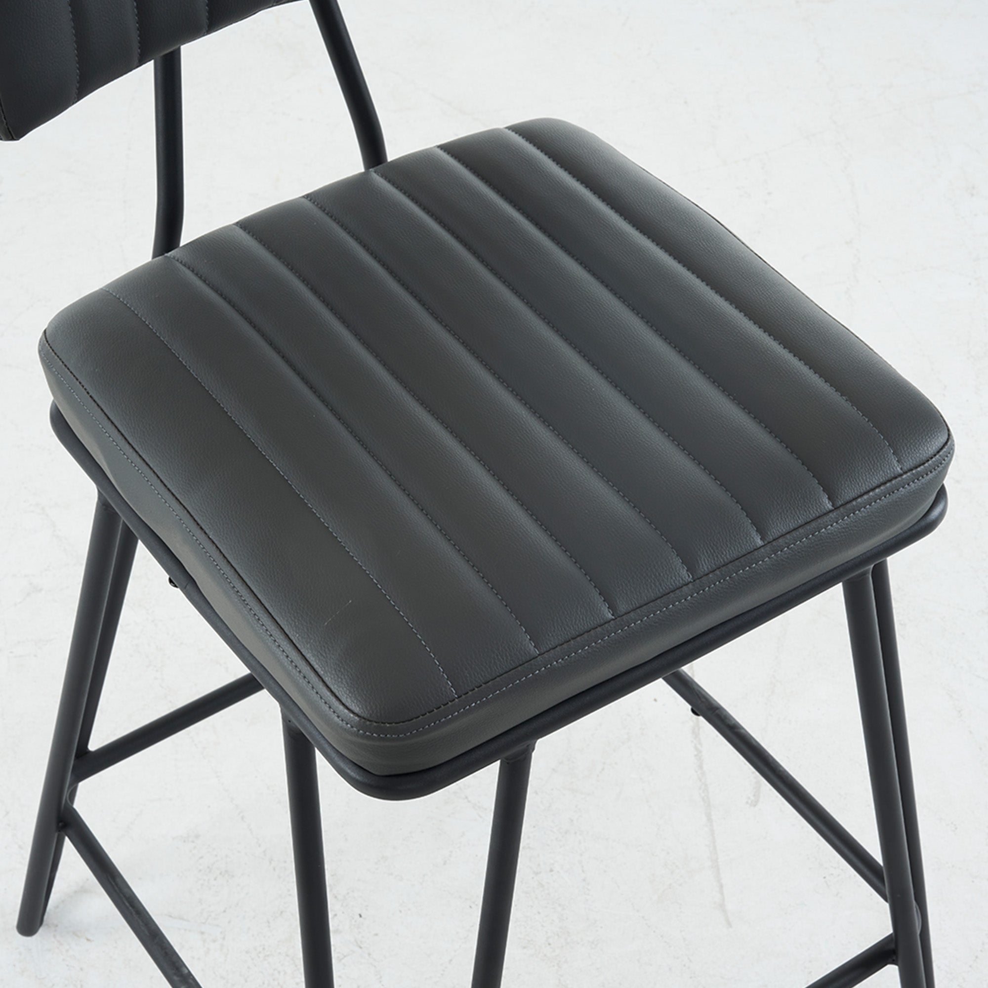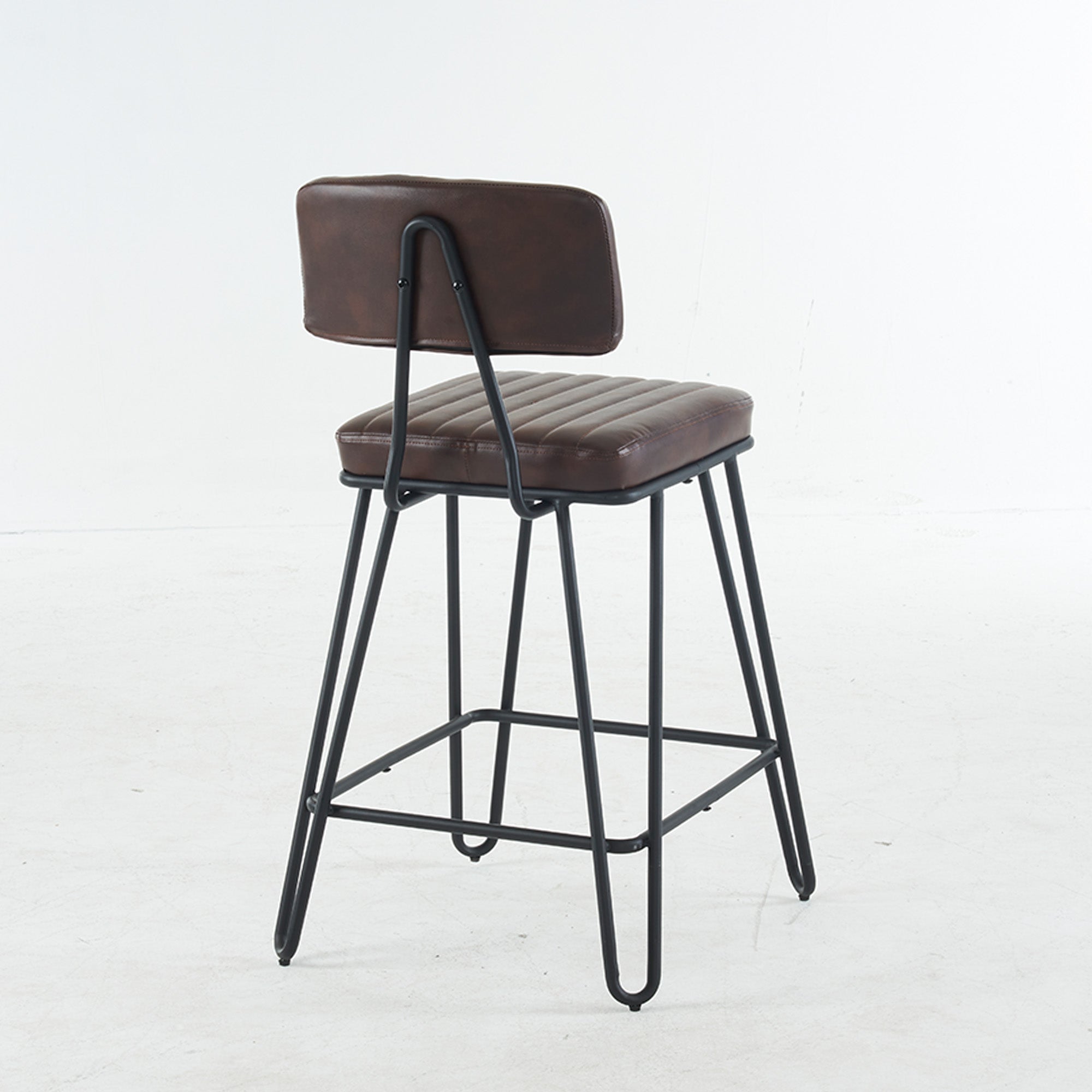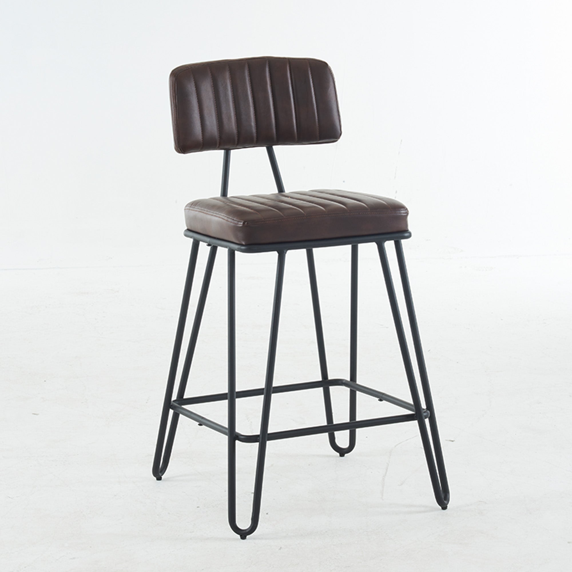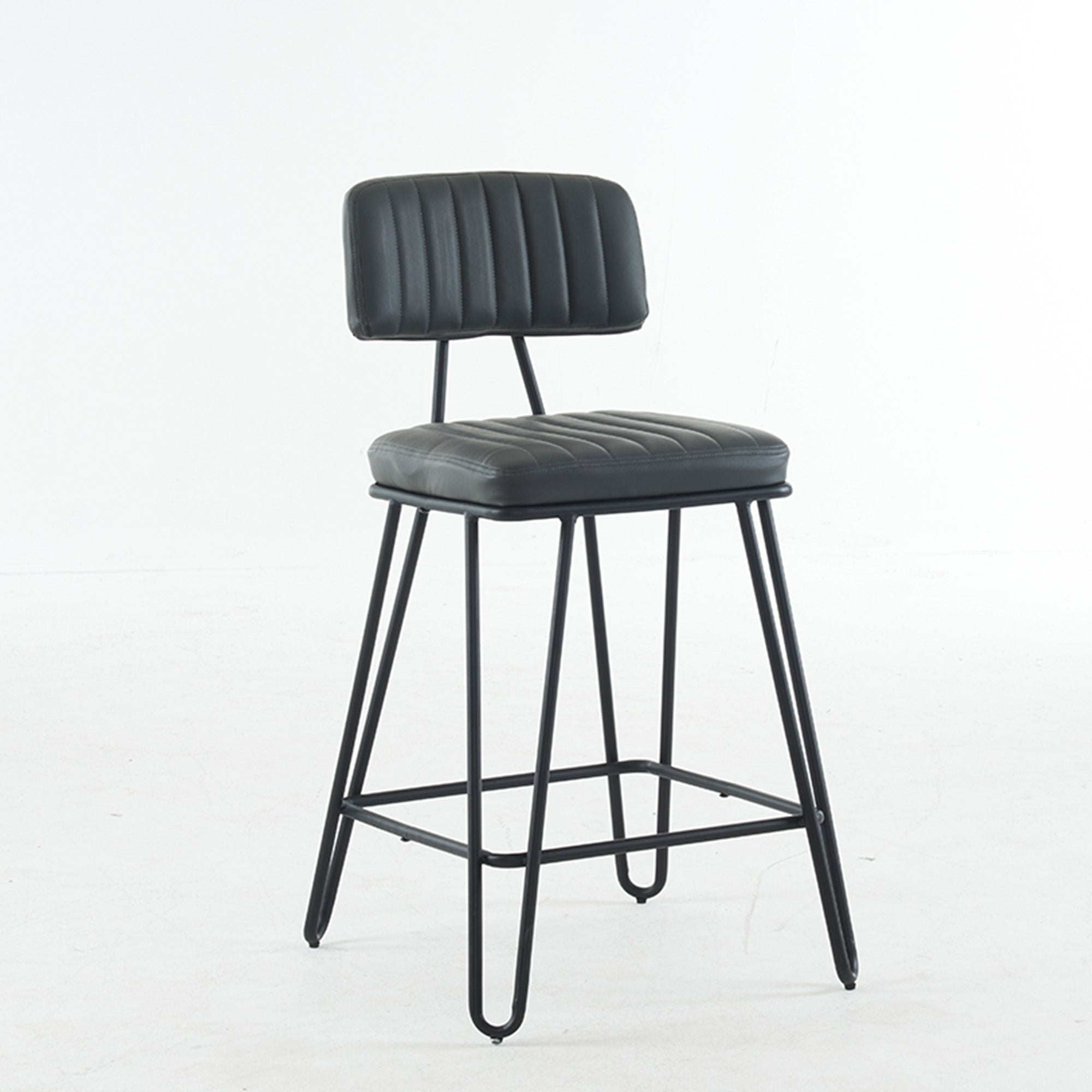 Bring vintage industrial style and everyday comfort to your kitchen island or home bar with this set of two counter-height bar stools. Cushioned PU seats with tailored vertical stitching and a gently angled backrest make long conversations and casual meals comfortable, while a sturdy metal frame and built-in footrest deliver dependable support and a classic loft look.