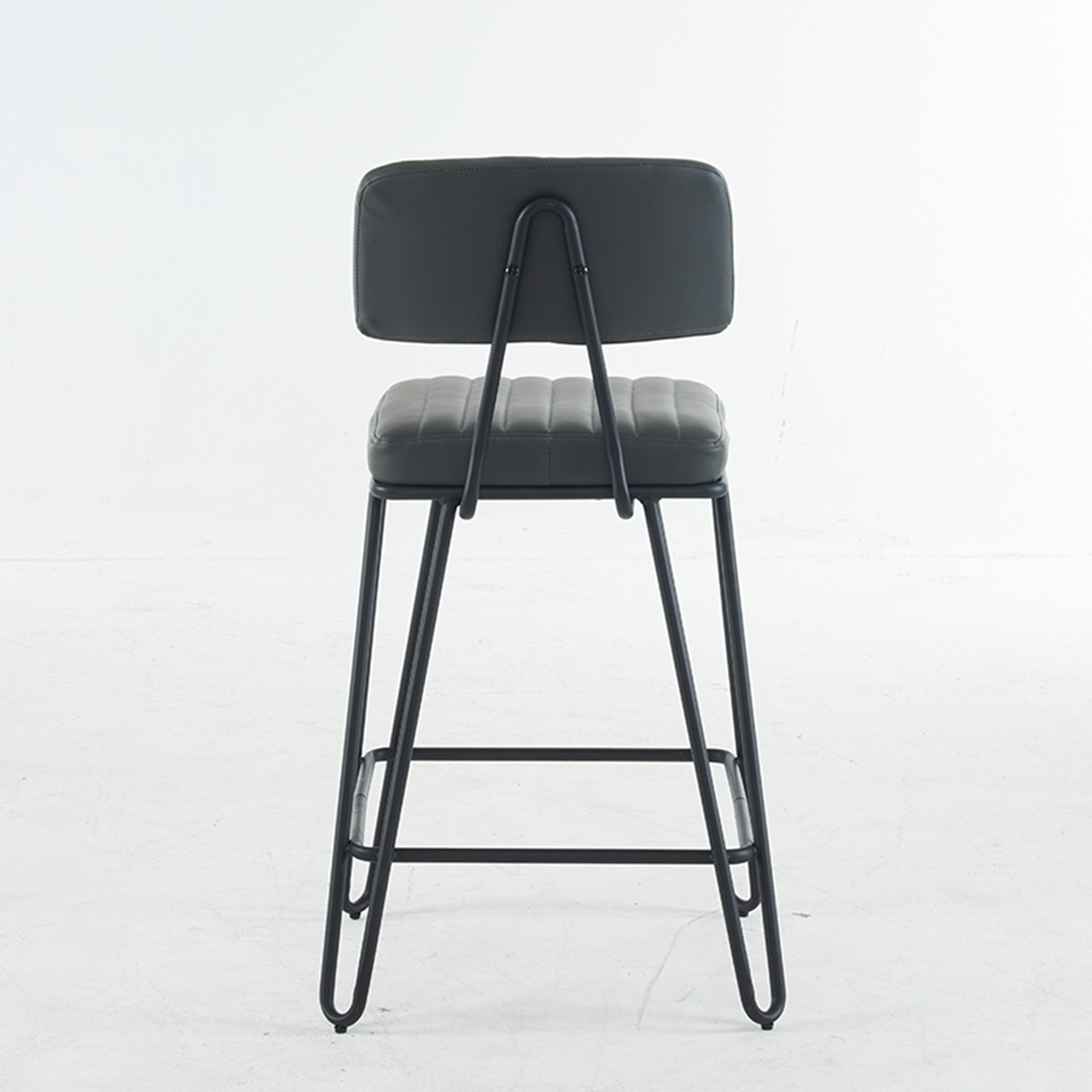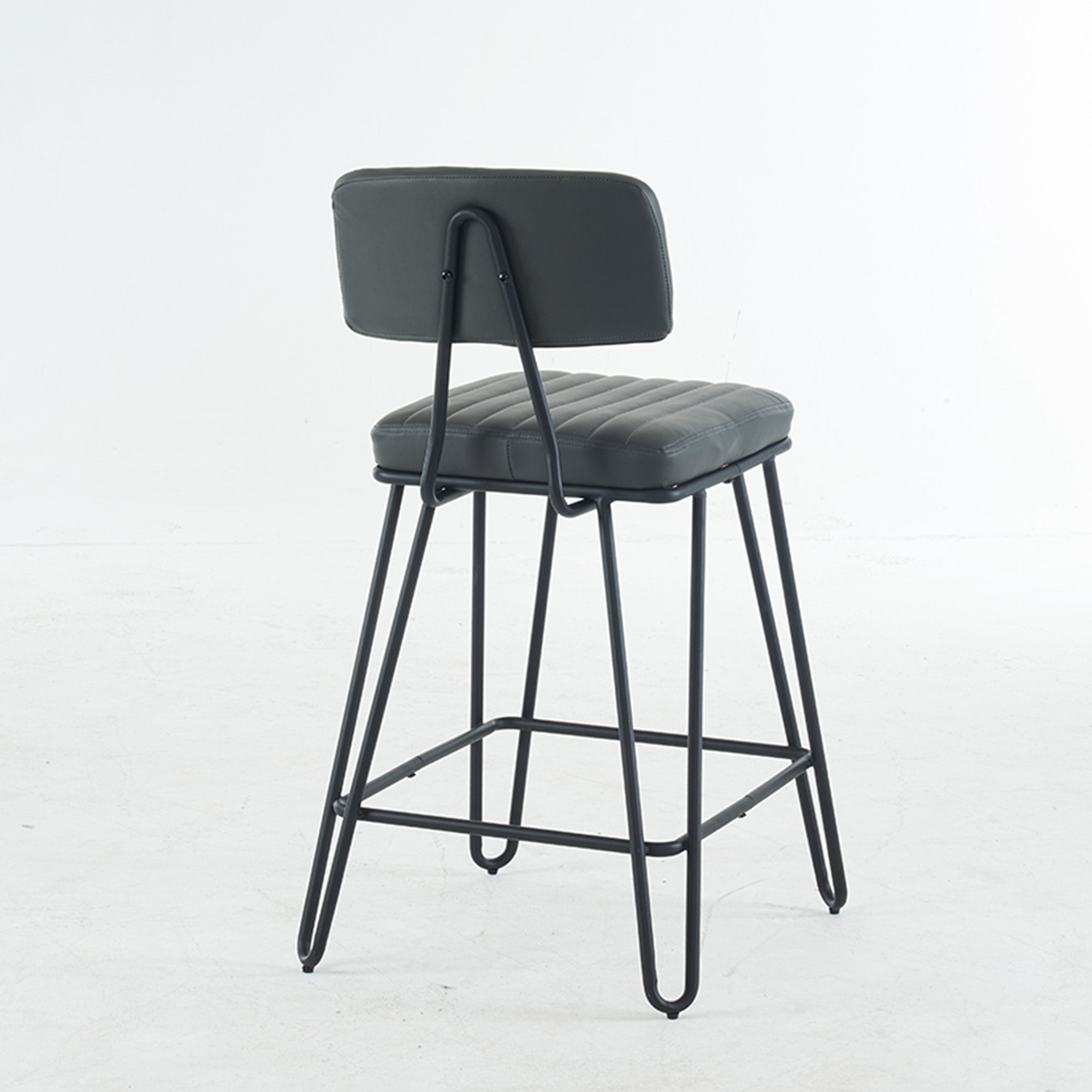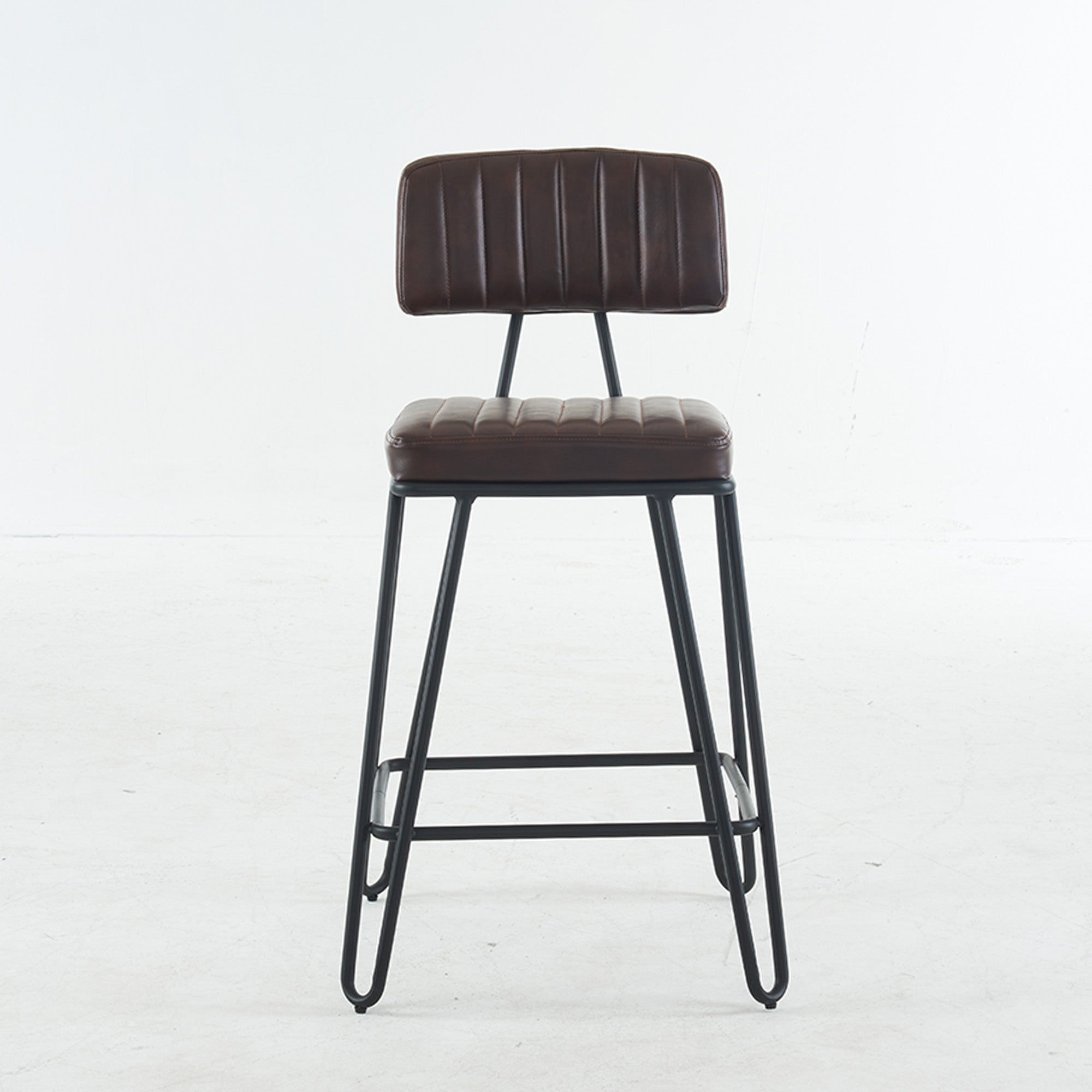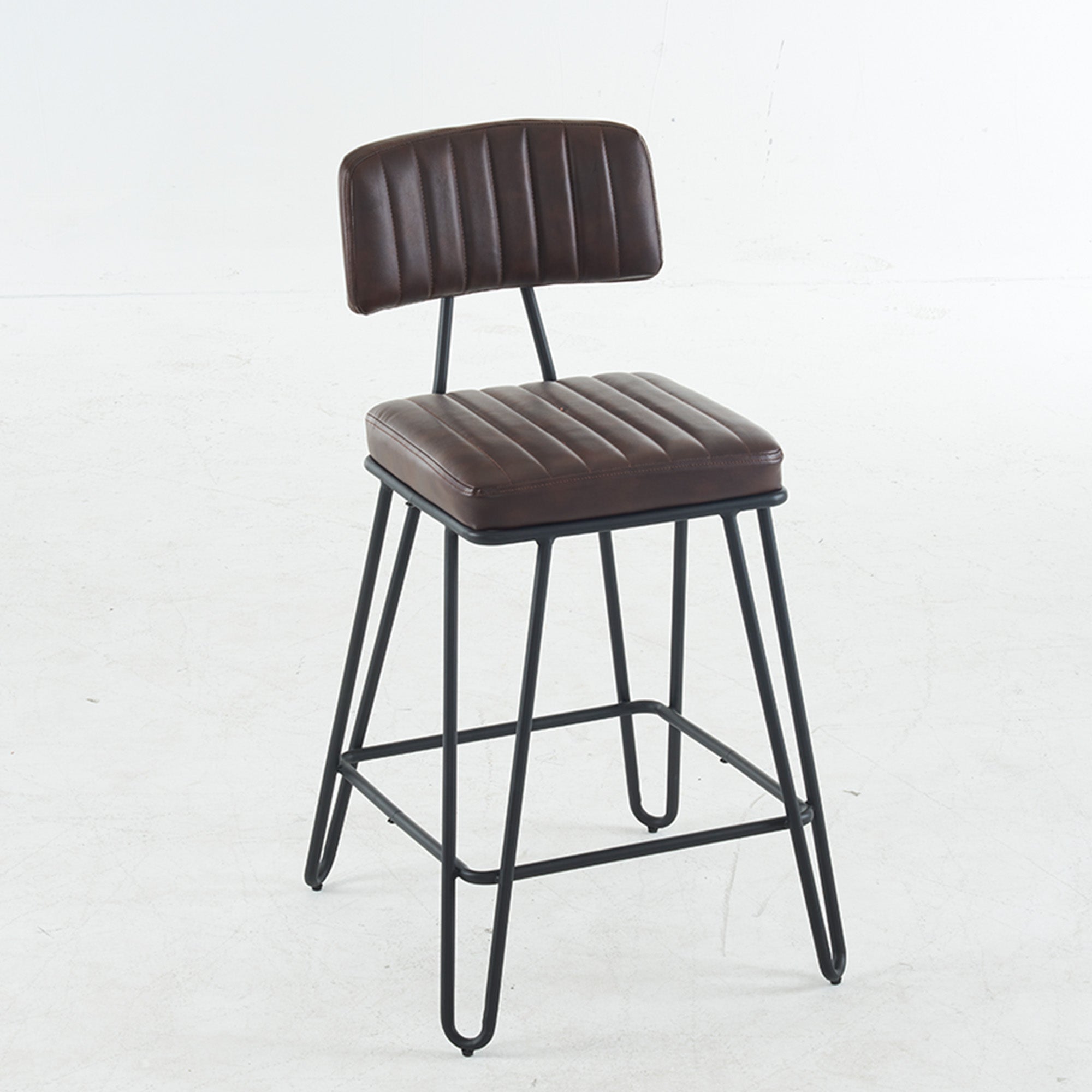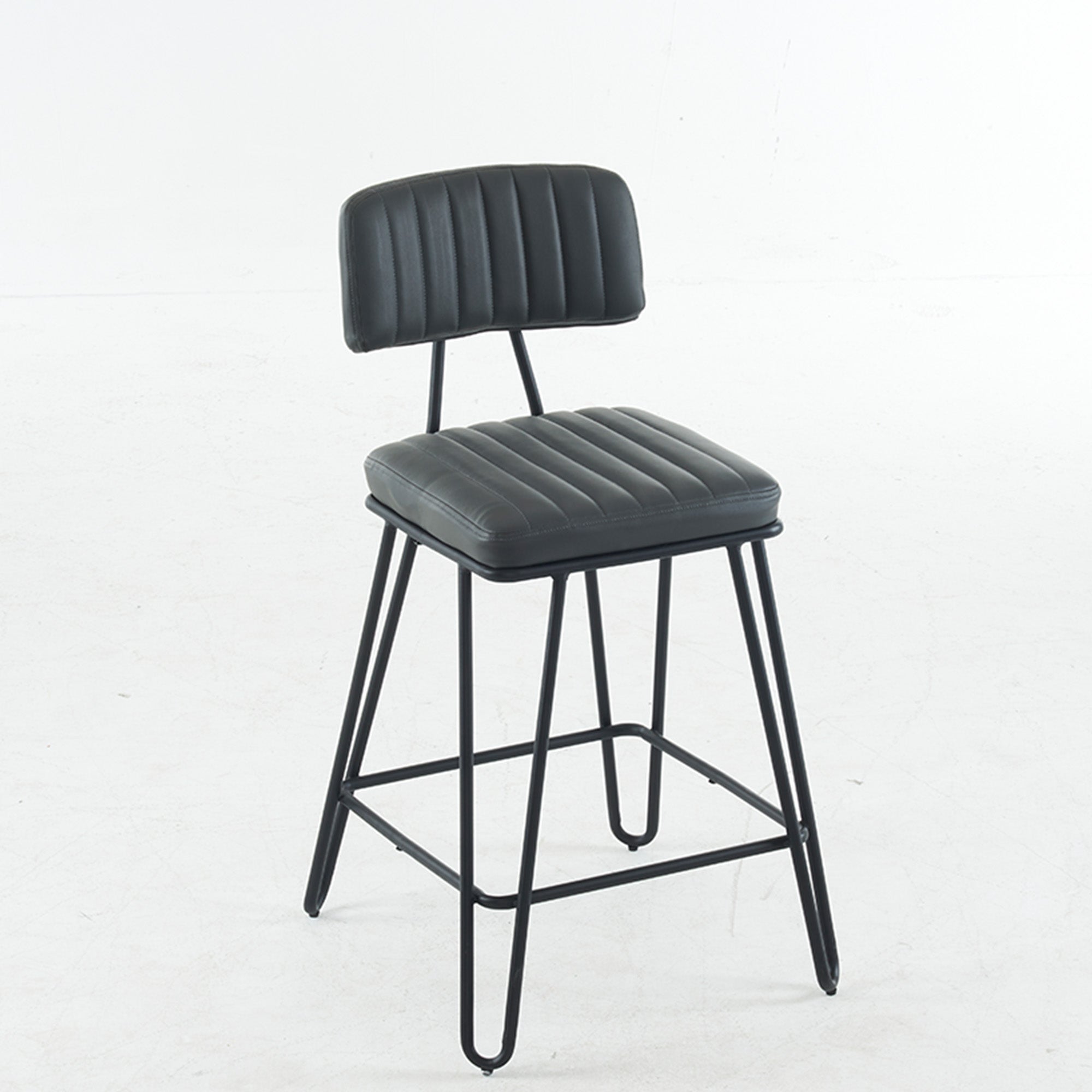 Bring vintage industrial style and everyday comfort to your kitchen island or home bar with this set of two counter-height bar stools. Cushioned PU seats with tailored vertical stitching and a gently angled backrest make long conversations and casual meals comfortable, while a sturdy metal frame and built-in footrest deliver dependable support and a classic loft look.