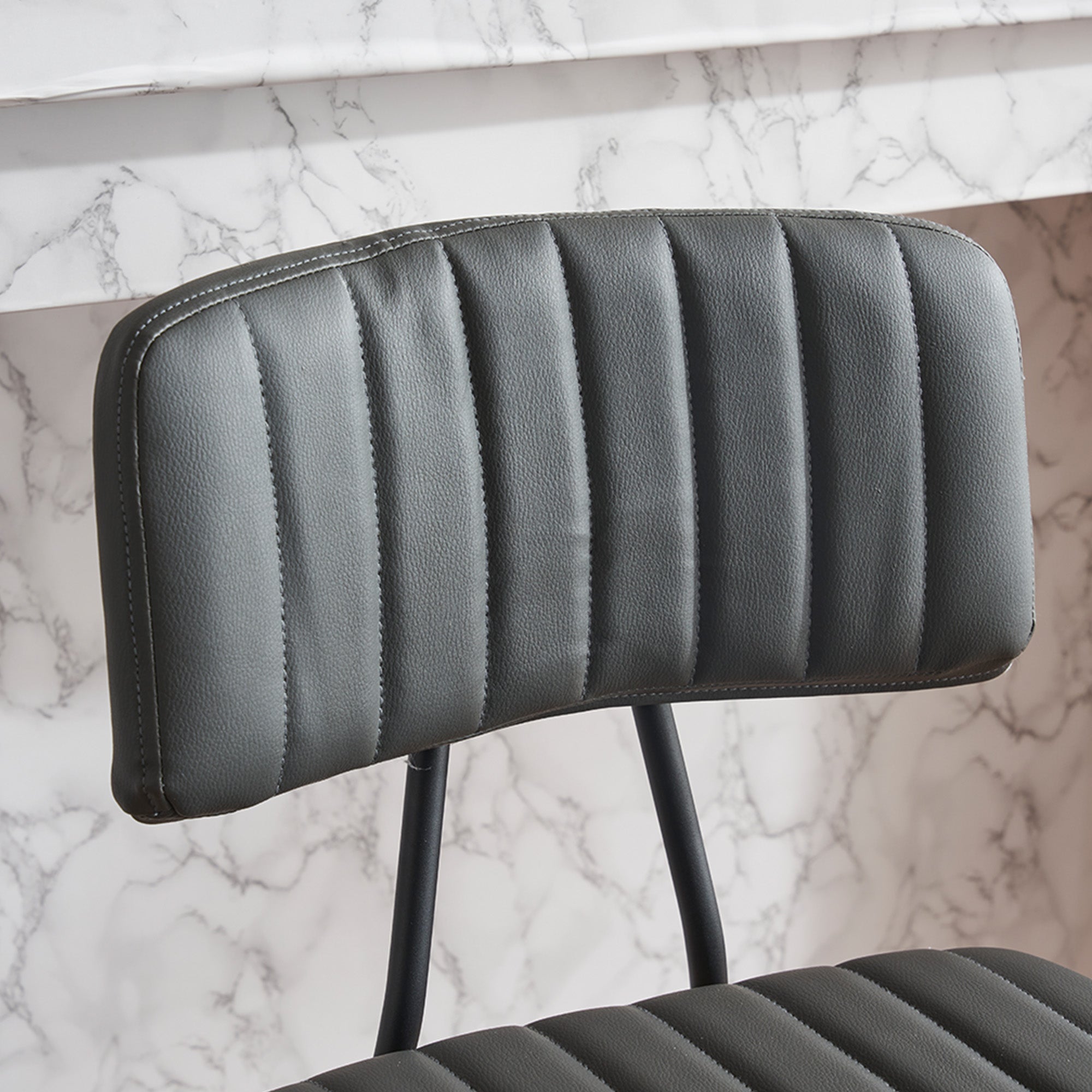 - 【Comfortable & Supportive】 Featuring a soft cushioned seat with vertical stitching and a slightly angled backrest, these counter height chairs provide superior comfort and ergonomic support for long sitting periods.