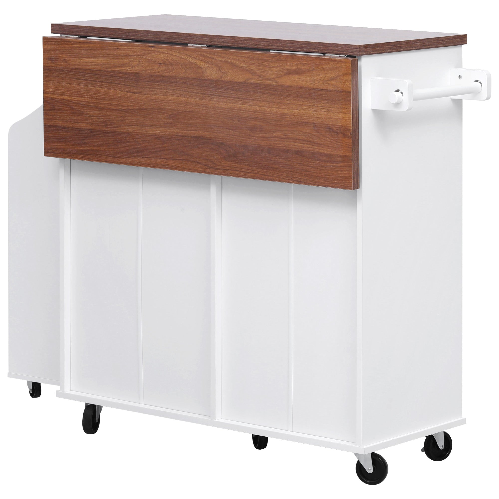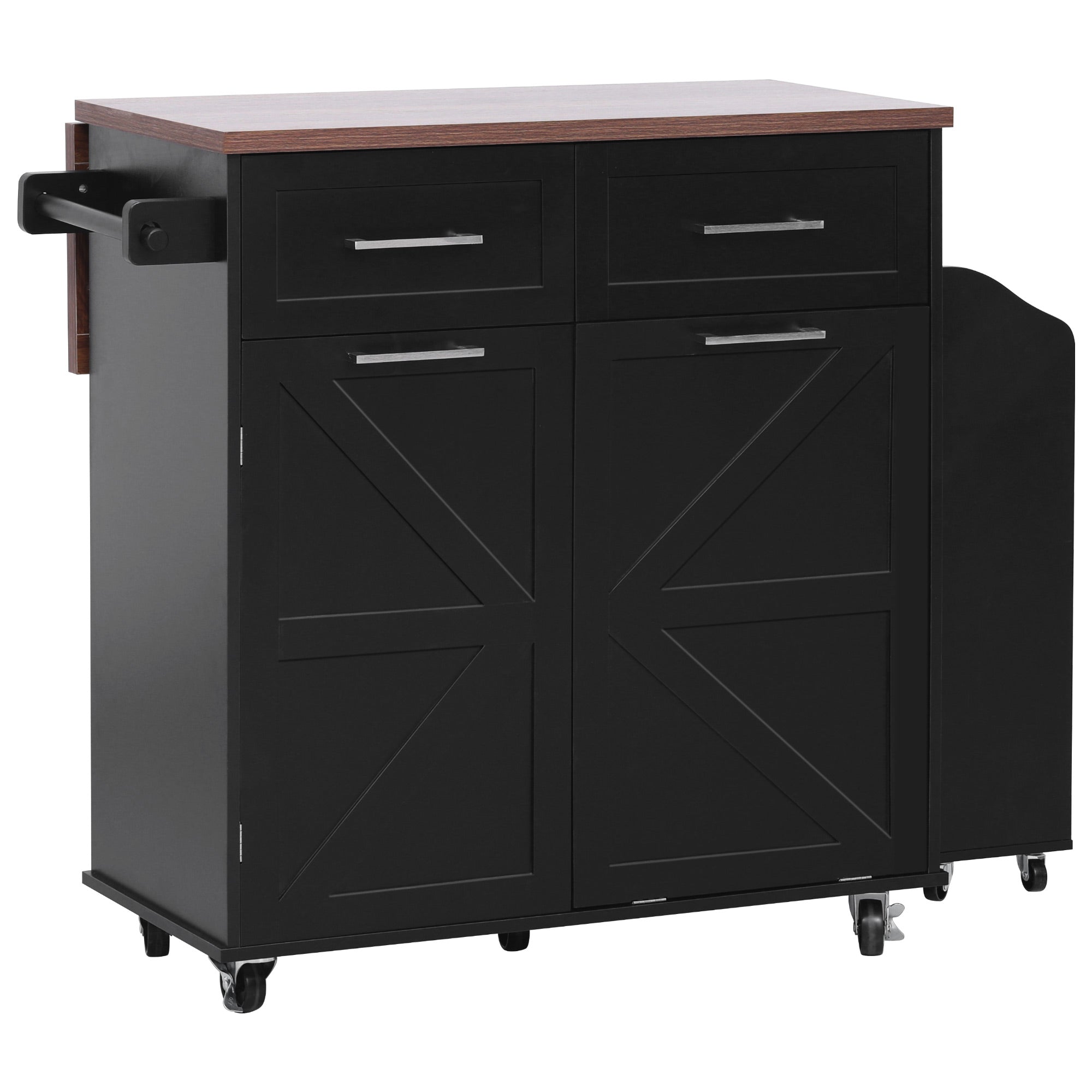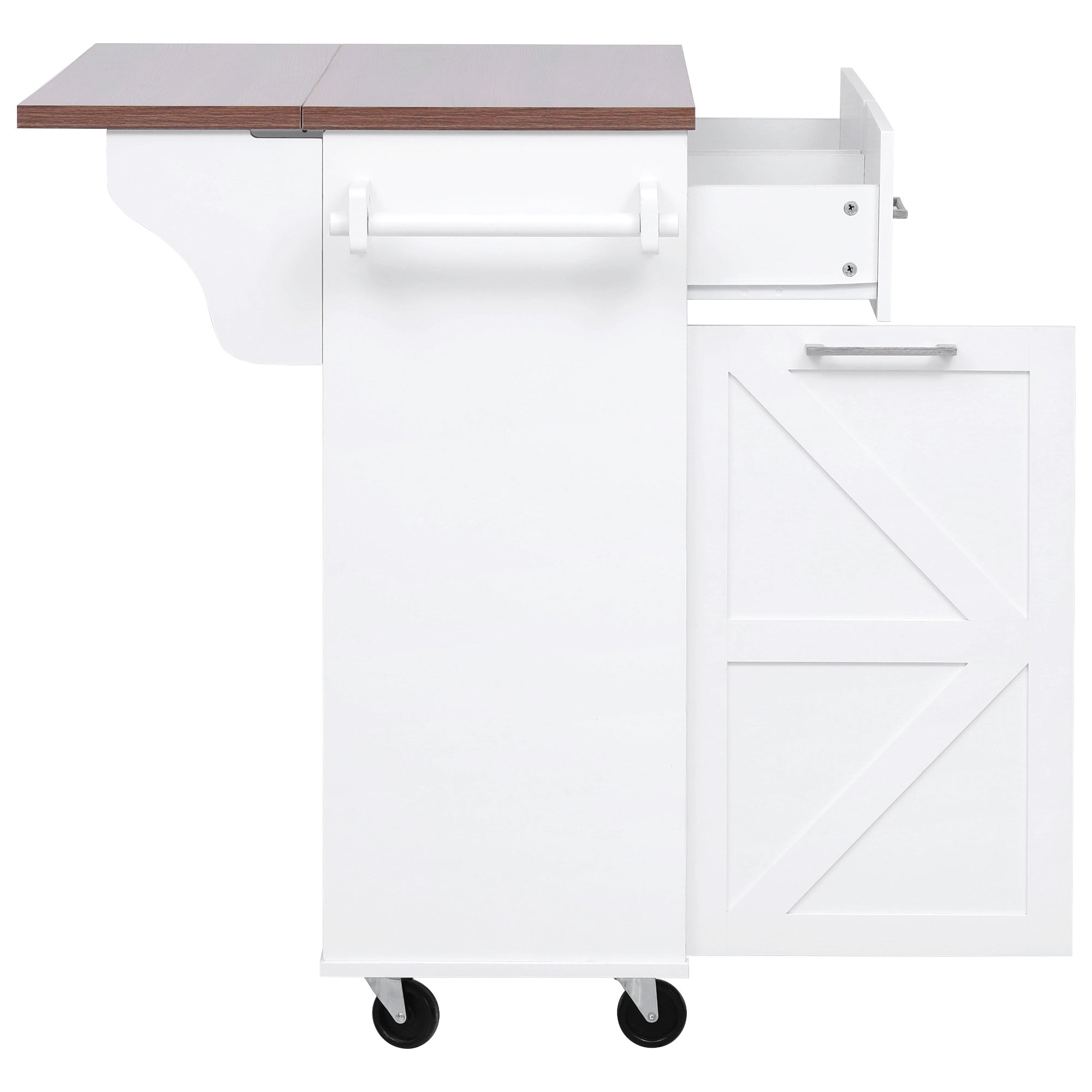 Add farmhouse charm and practical workspace to your kitchen with this versatile rolling island. Thoughtfully designed for everyday use, it combines generous storage, a space-saving drop leaf, and mobility so you can prep, serve, and store with ease. Durable construction and farmhouse details—barn-style doors, silver metal handles, and a towel/push bar—deliver both style and function for kitchens, dining rooms, and entertaining spaces.