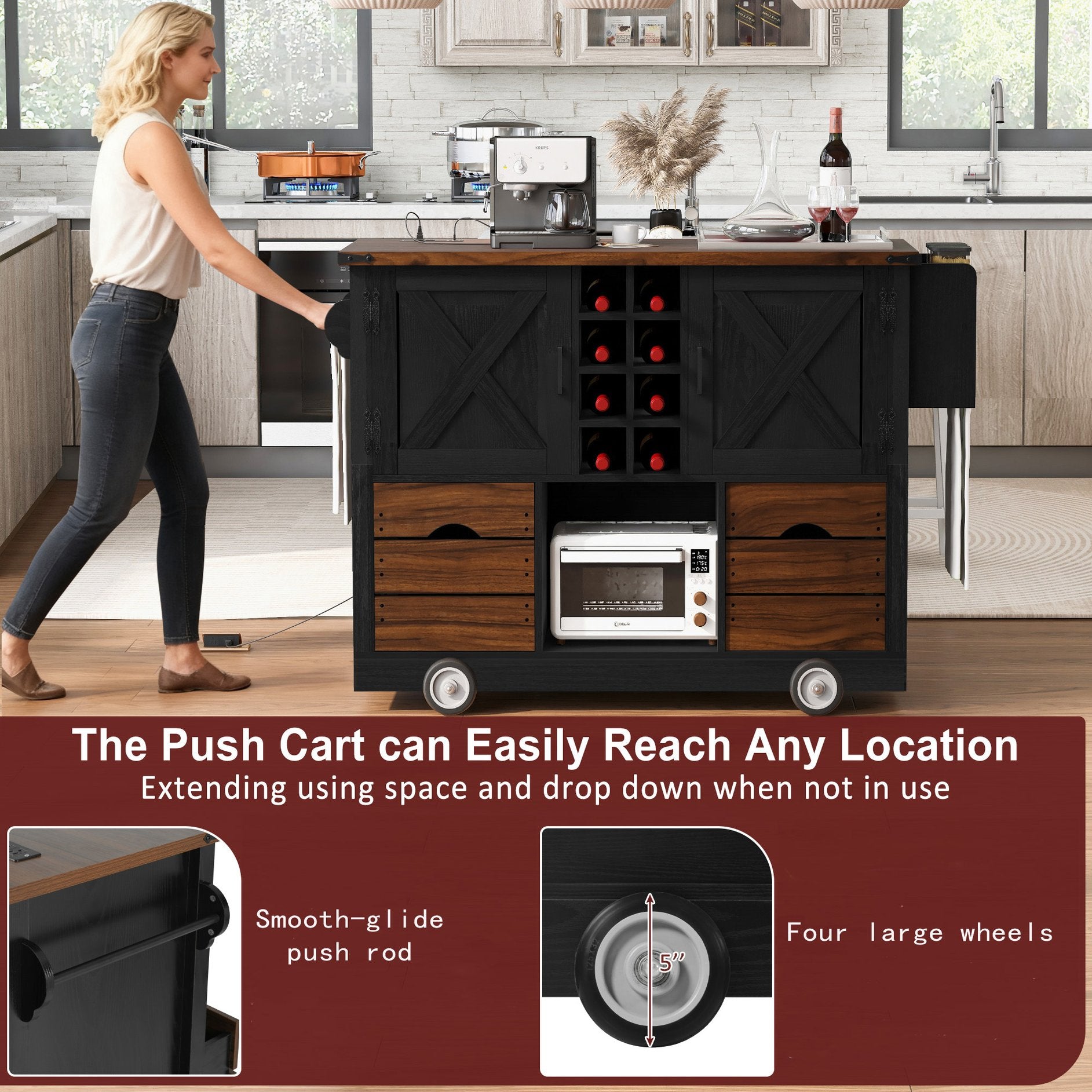 - [Convenient Charging Station] Say goodbye to messy charging cables and enjoy the convenience of the built-in charging station. This elegantly designed kitchen cart includes a sophisticated built-in power outlet, featuring 2 AC outlets, 1 USB port and 1 Type-C port to effortlessly meet all of your kitchen appliance power requirements. You can conveniently charge your coffee maker, juicer, and toaster on the countertop of this kitchen storage island.