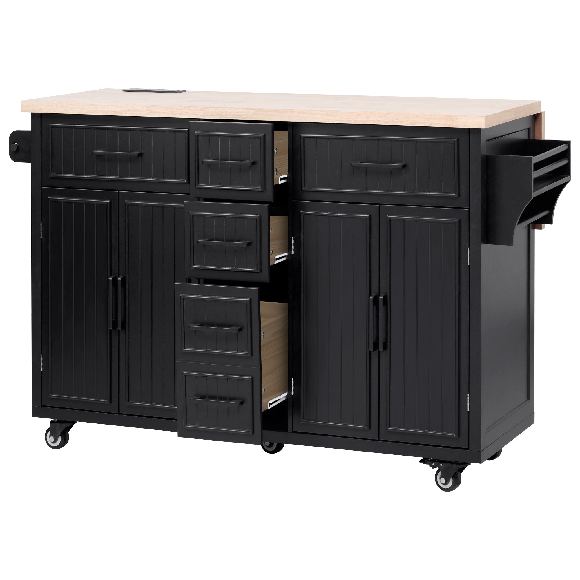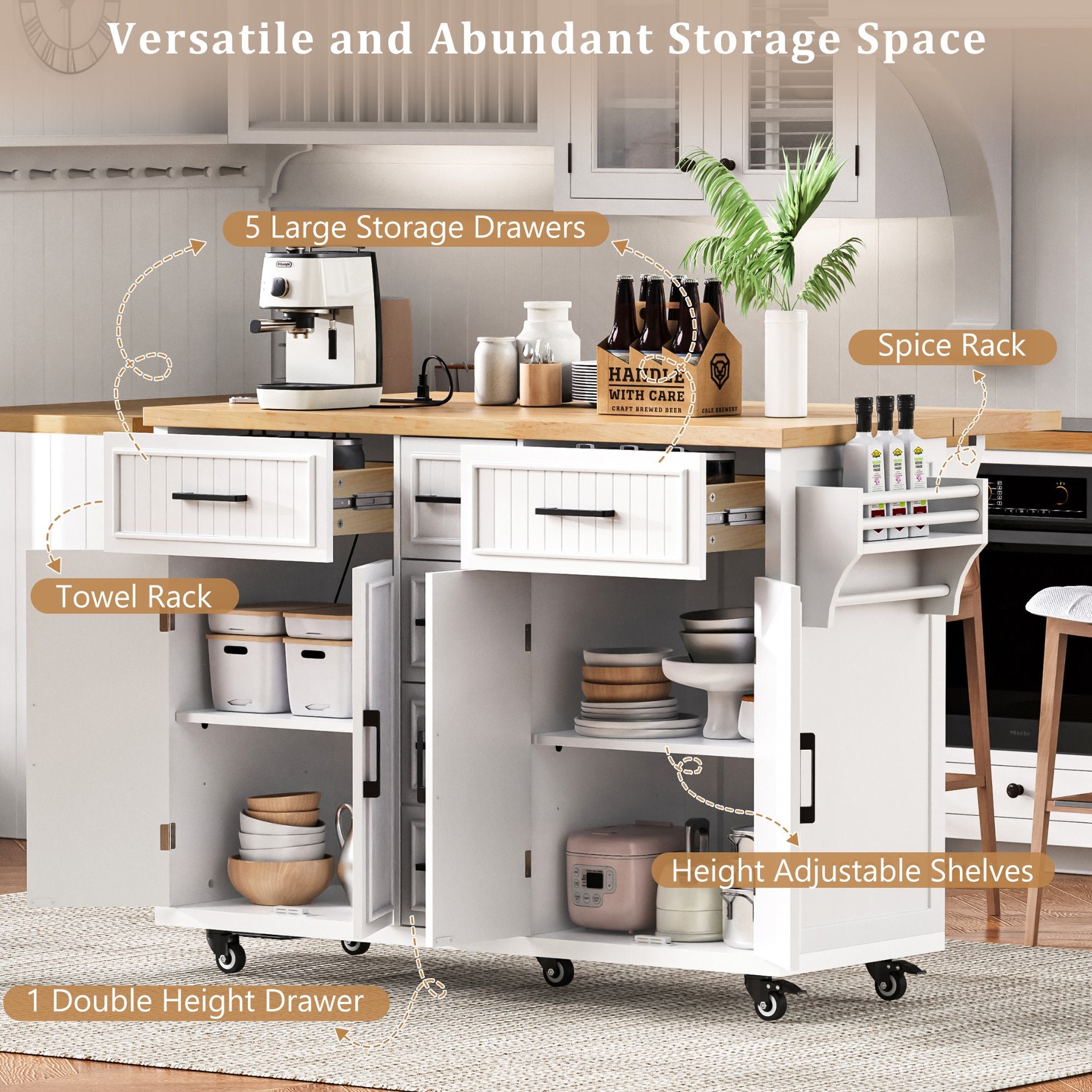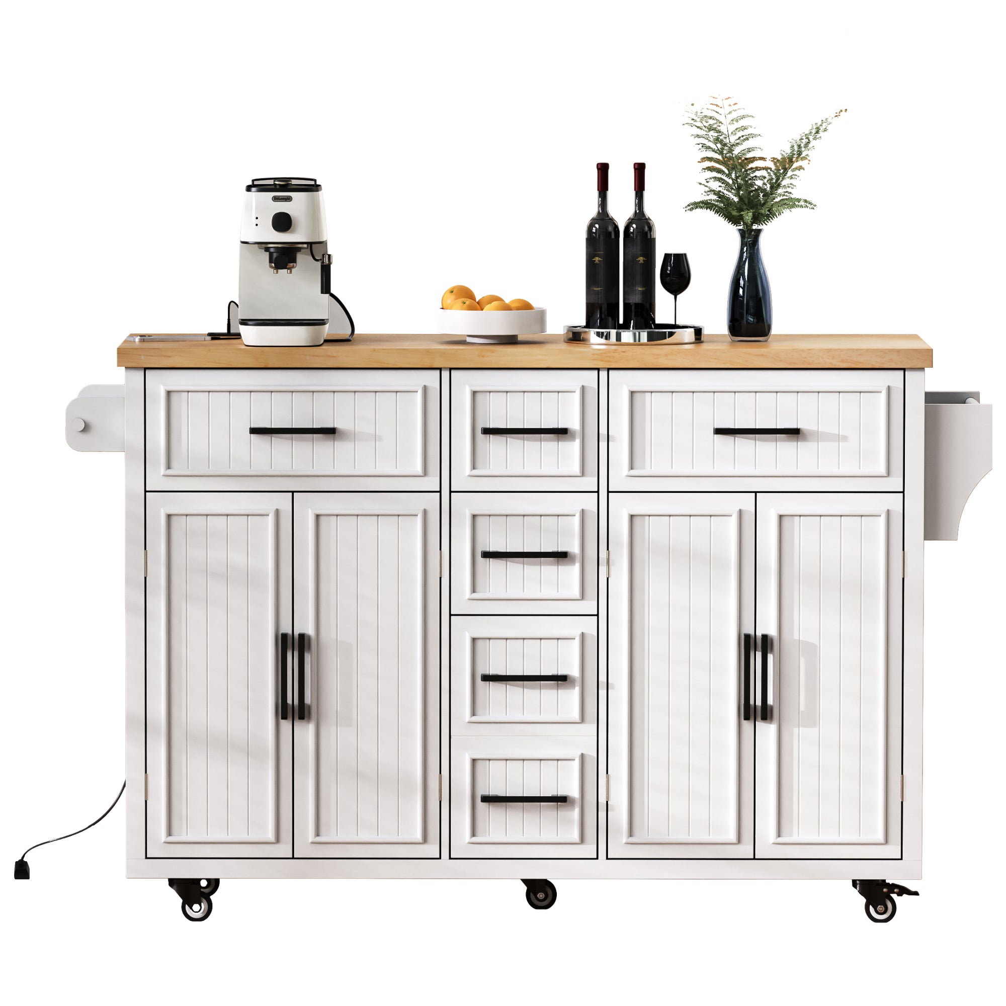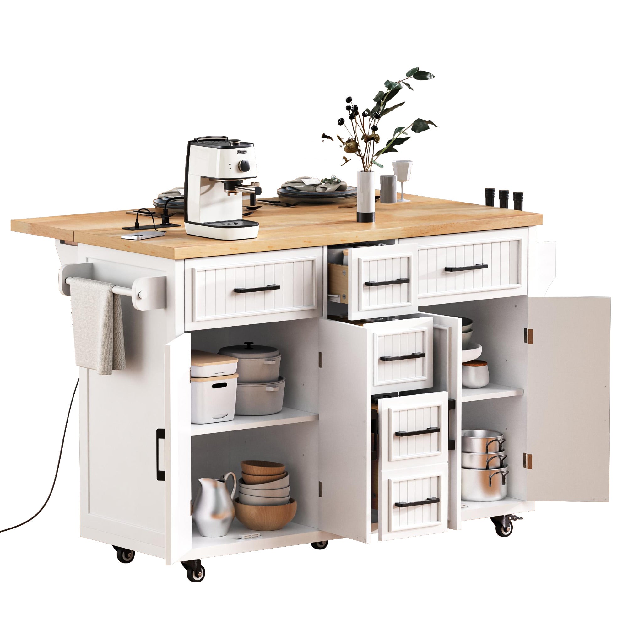 - [Convenient Charging Station] Say goodbye to messy charging cables and enjoy the convenience of the built-in charging station. This elegantly designed kitchen cart includes a sophisticated built-in power outlet, featuring 2 AC outlets, 1 USB port and 1 Type-C port to effortlessly meet all of your kitchen appliance power requirements. You can conveniently charge your coffee maker, juicer, and toaster on the countertop of this kitchen storage island.