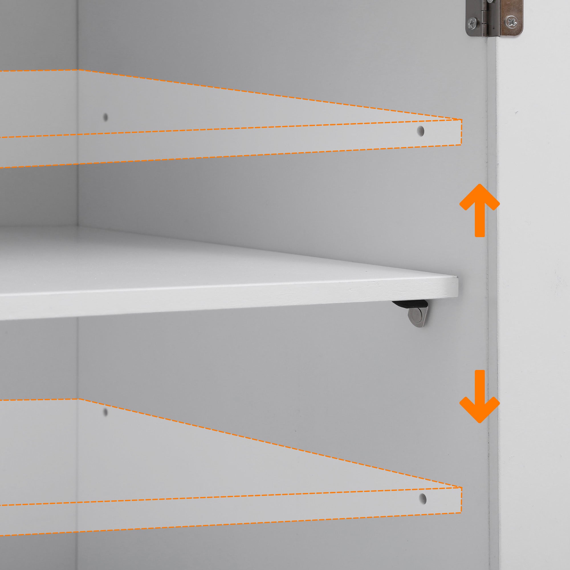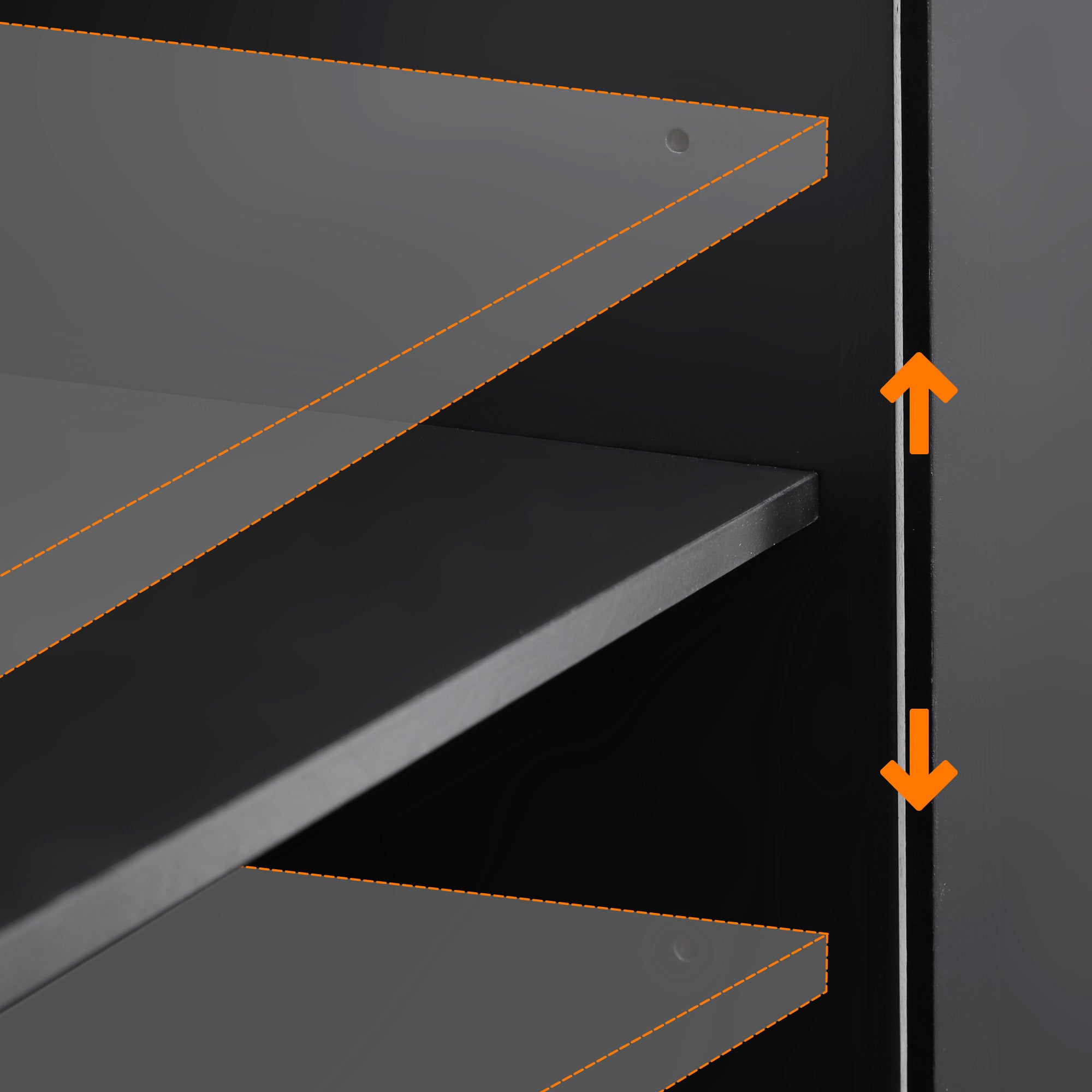 - Ample, organized storage: Four cabinet doors, five deep drawers (including one faux double-deep drawer for taller items), interior adjustable shelves, spice rack and towel rack provide flexible storage for cookware, pantry items and linens.