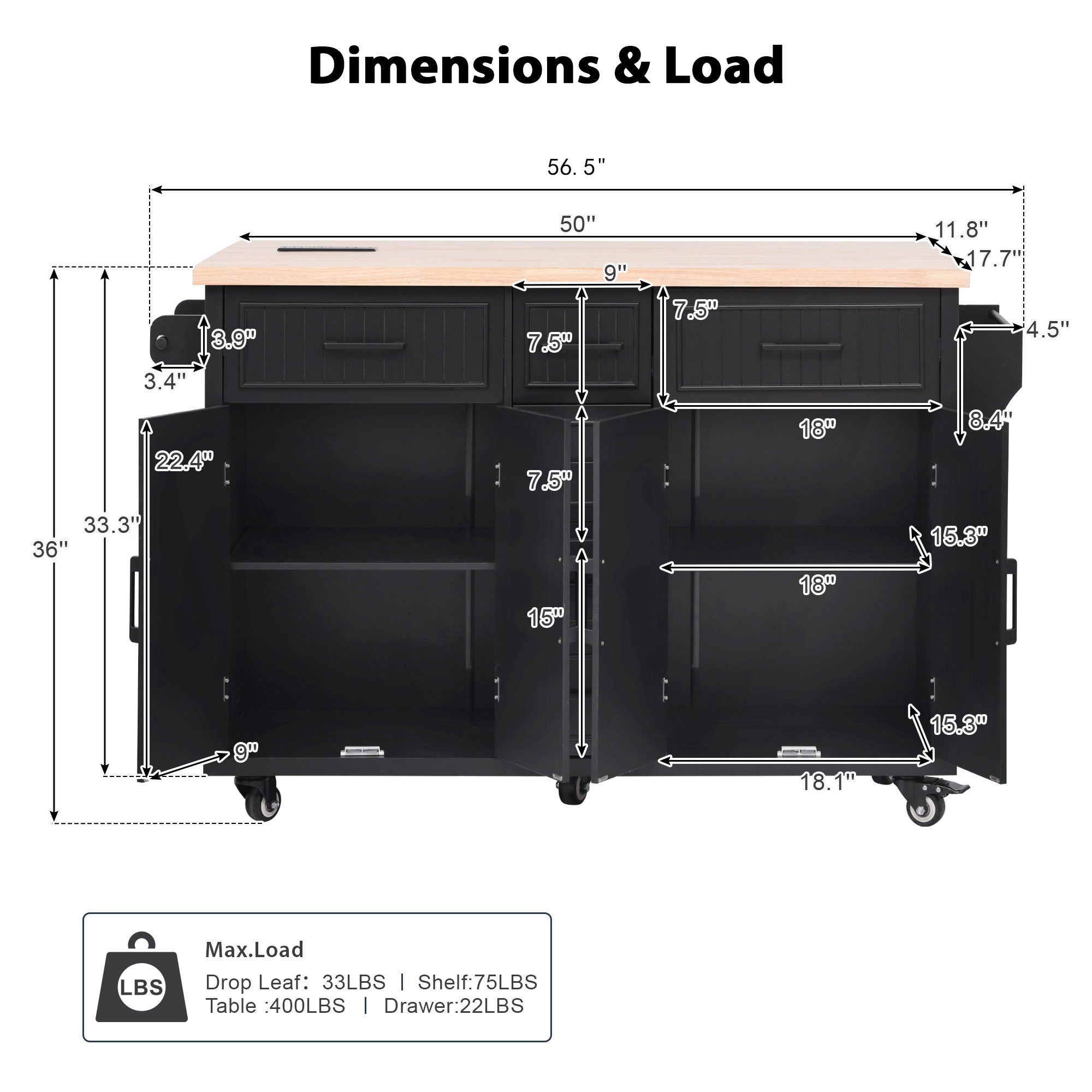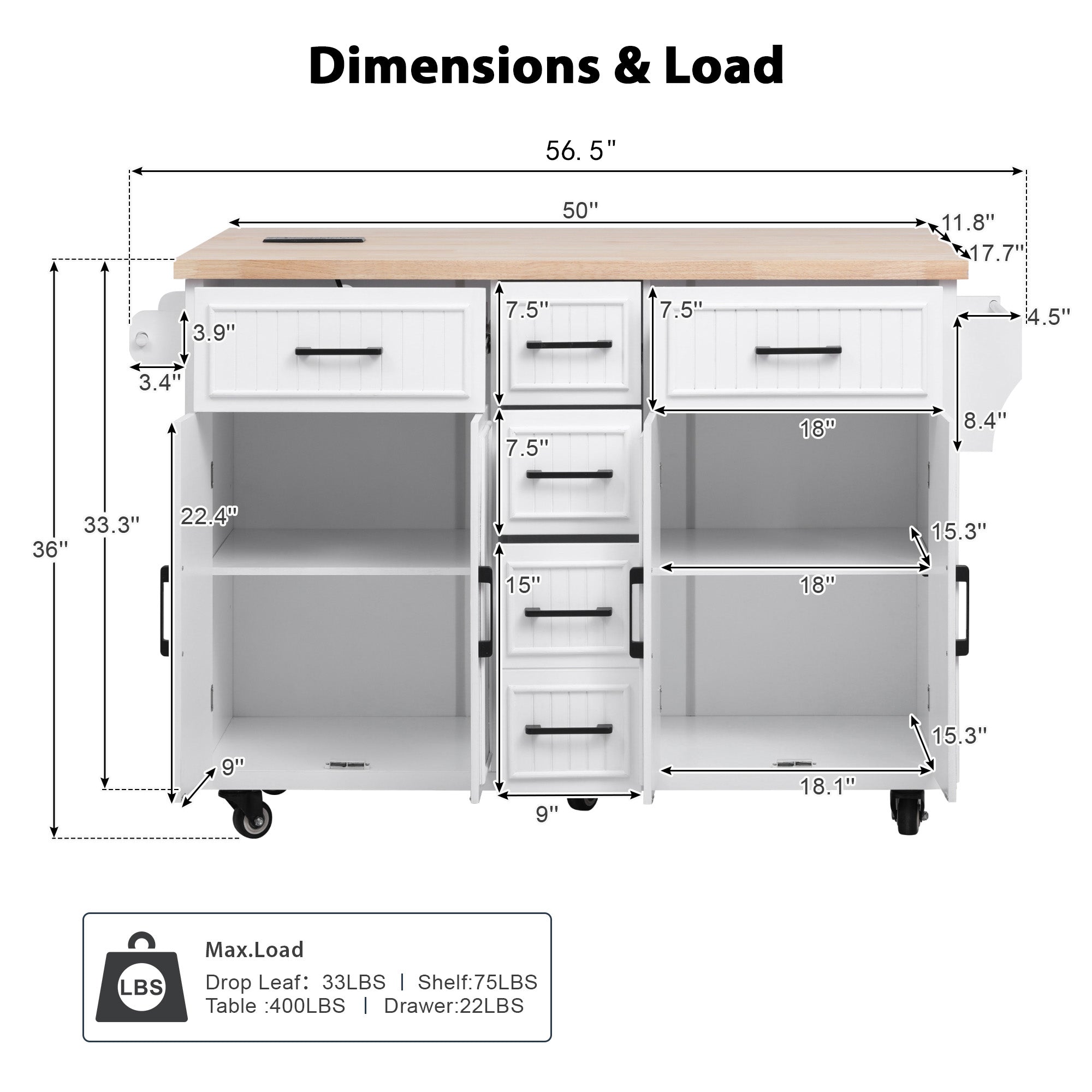 - [Drop Leaf Design] This 50'' wide kitchen island comes with an excellent drop leaf design, serving as an intelligent and efficient solution for compact kitchens or dining areas. The inclusion of the drop leaf table allows for effortless folding when not in use, thereby optimizing the utilization of available space.