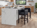 Bring timeless style and everyday comfort to your counter or bar with this elegant Kingsley wood upholstered barstool in black. Thoughtfully designed for durability and relaxed seating, it pairs a warm beech-wood frame and walnut finish with cushioned faux-leather upholstery and a luxe gold-tone footrest—ideal for kitchens, home bars, or casual dining spaces.
