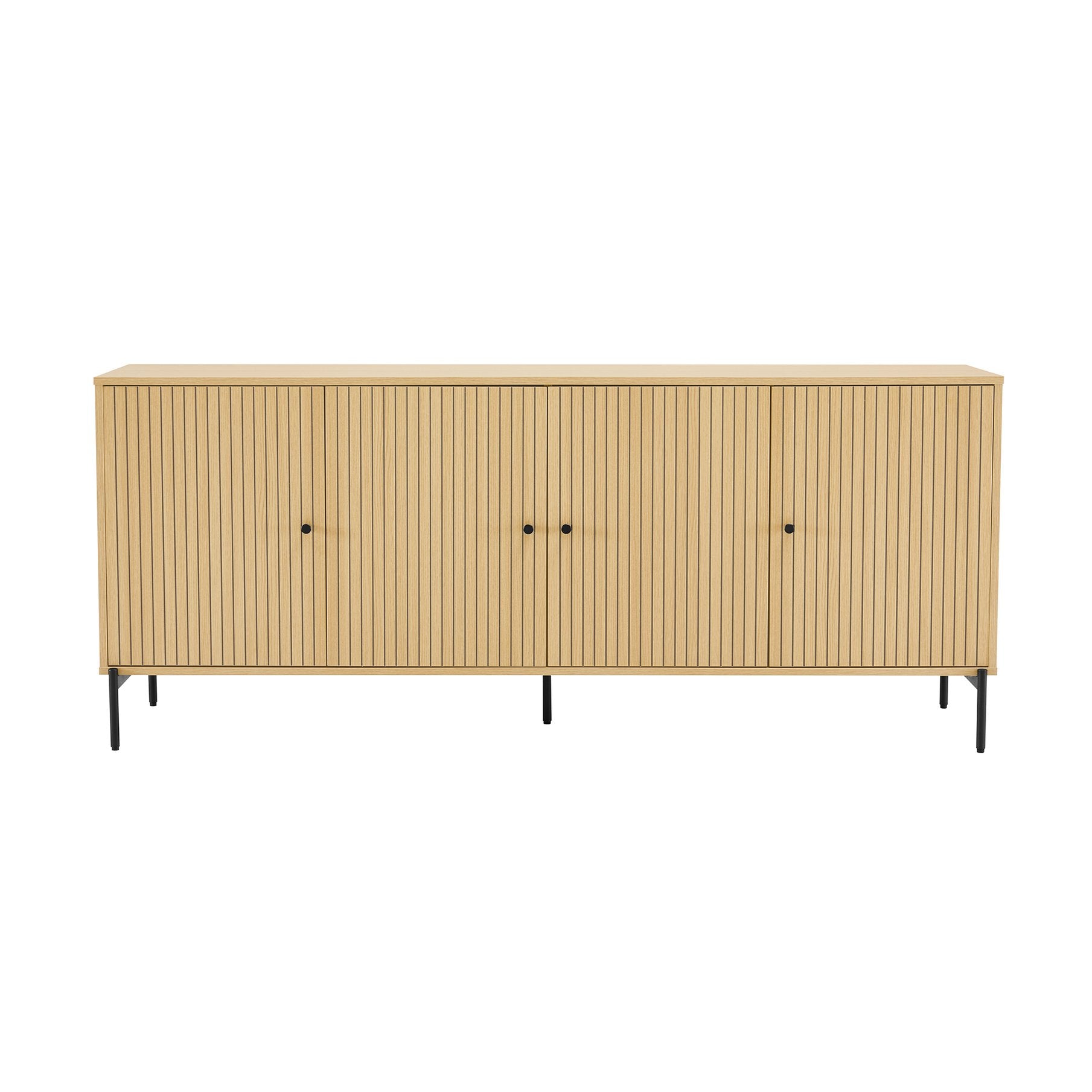 Bring modern warmth and practical storage to your living space with this Magnolia sideboard in light oak. Its clean slatted front, black metal legs, and soft-close doors blend Scandinavian-inspired styling with everyday functionality—ideal as a media console, buffet, or display cabinet for living and dining rooms.