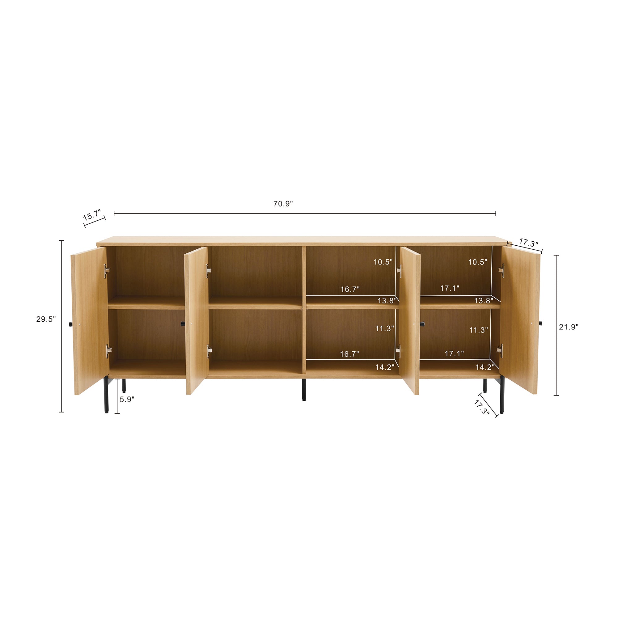 - Upon assembly, Sideboard Dimensions Measure: 70.9 in. Length, 29.5 in. Height, 15.7 in. Depth.