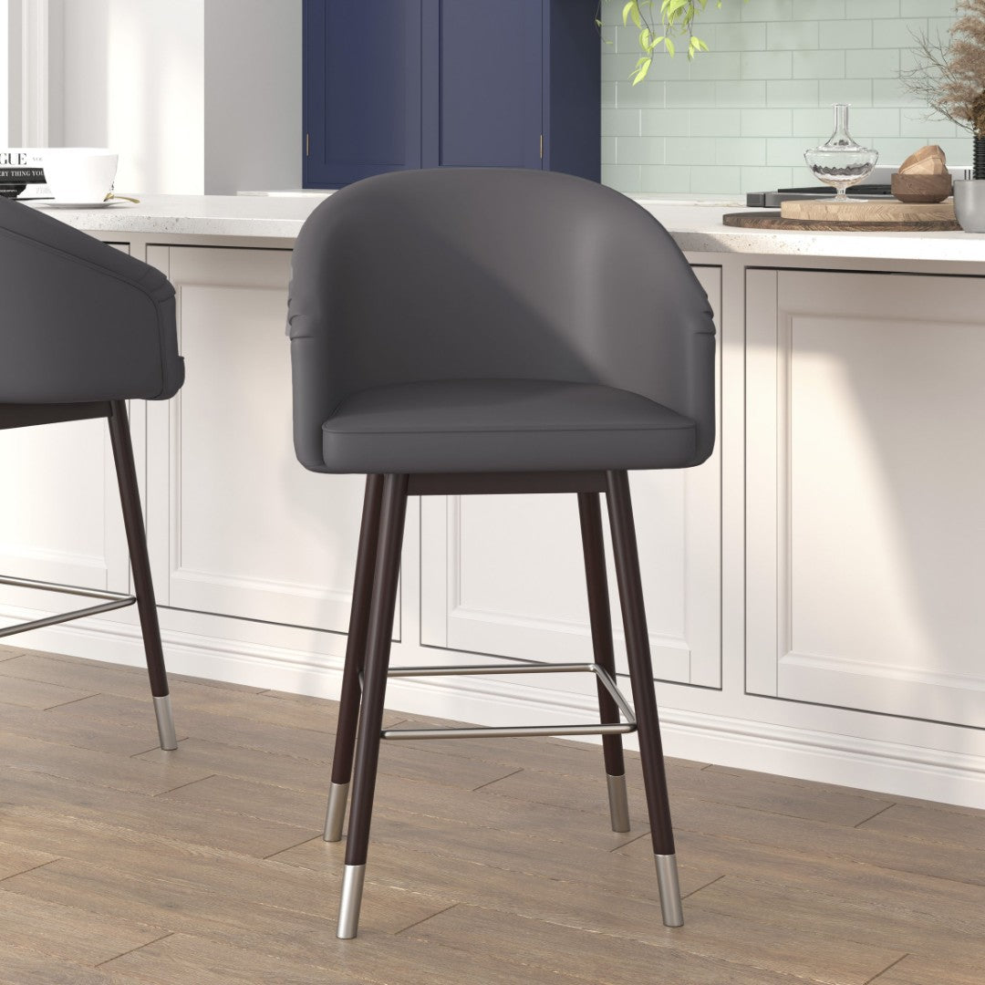 Give your kitchen, café, or commercial space a sleek, modern upgrade with this set of two mid-back counter stools. Thoughtfully designed for comfort, durability, and style, these stools combine contoured seating and integrated arms with high-quality materials—making them ideal for everyday use in both residential and business settings.