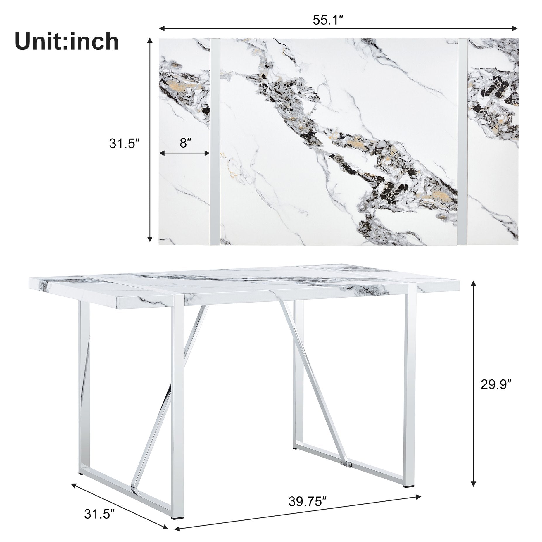 - LUXURIOUS FAUX MARBLE TABLETOP - The stunning faux marble top is designed to impress your guests with its realistic look and feel, adding a touch of elegance to every meal. Features a 1.8-inch thickened top made with sturdy MDF and durable laminate, ensuring that it stands the test of time. Whether you're hosting a formal dinner party or enjoying a family meal, this luxurious faux marble tabletop is the perfect addition to your home.