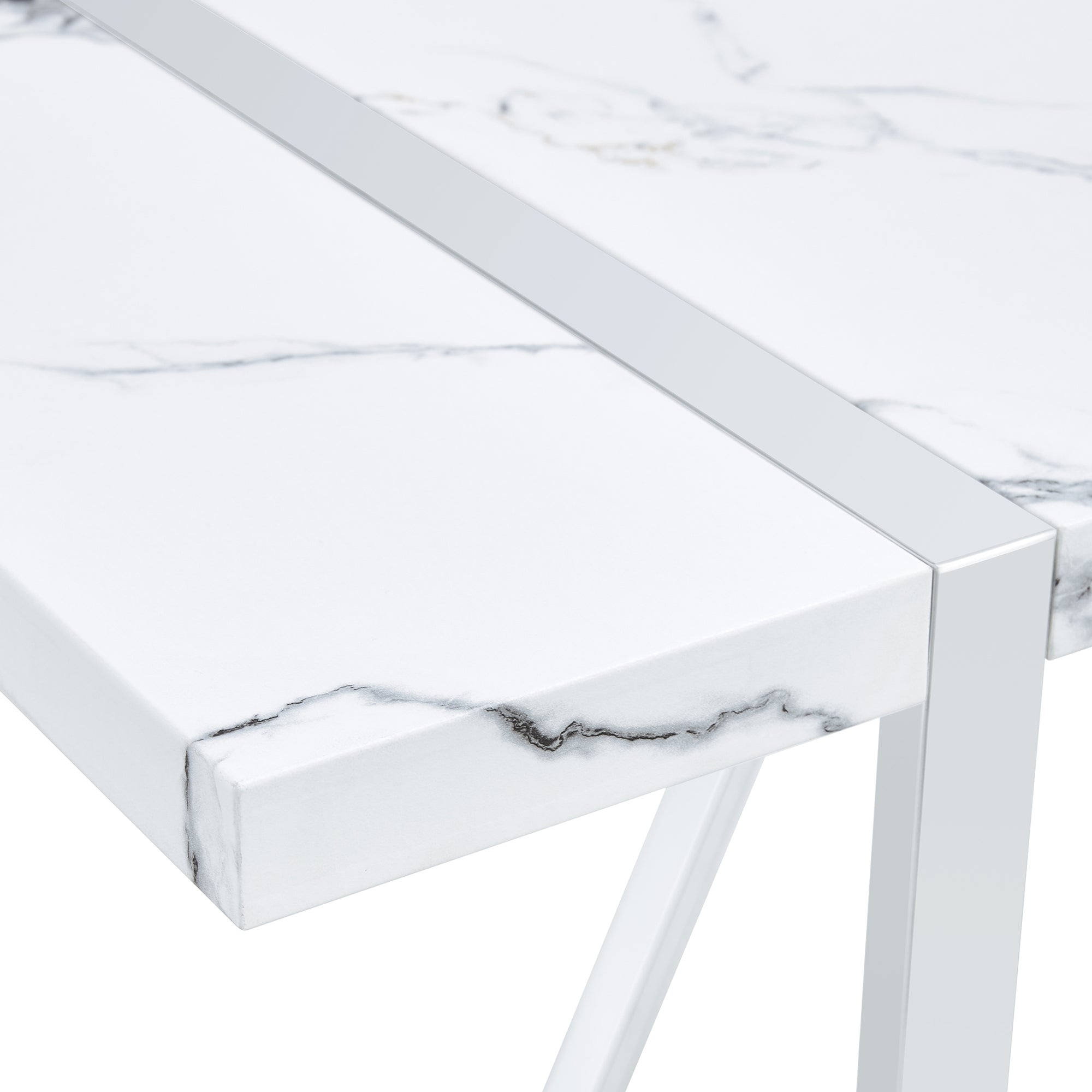 Elevate your dining and living spaces with this sleek, modern rectangular table featuring a faux marble top and sturdy silver steel legs. Designed to seat four comfortably, it blends contemporary style with everyday durability—ideal for dining rooms, home offices, or as a versatile accent table. Easy to assemble and low-maintenance, it provides a refined focal point while standing up to regular use.
