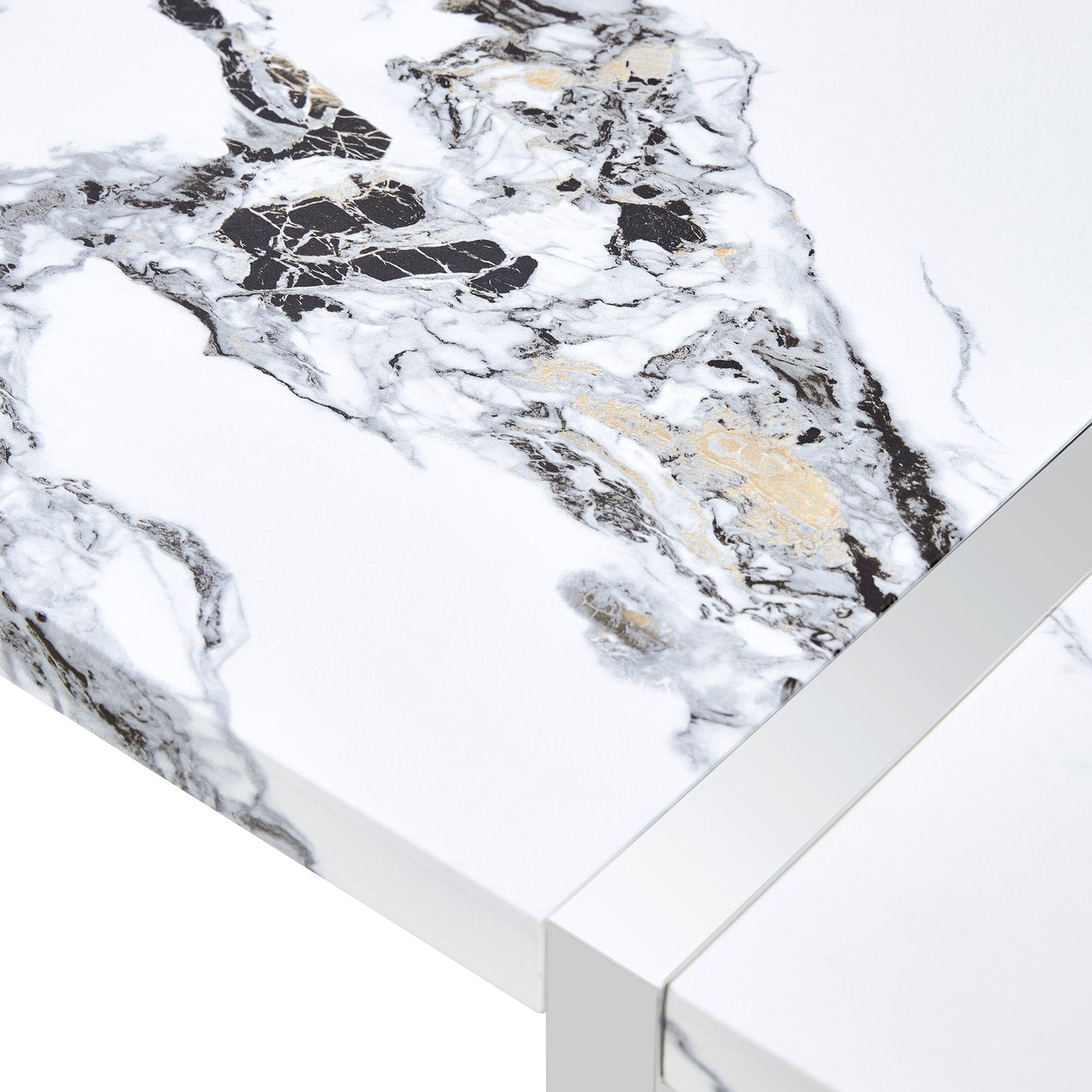 - Materials: Faux marble MDF tabletop for a refined look; powder-coated steel legs for stability and corrosion resistance