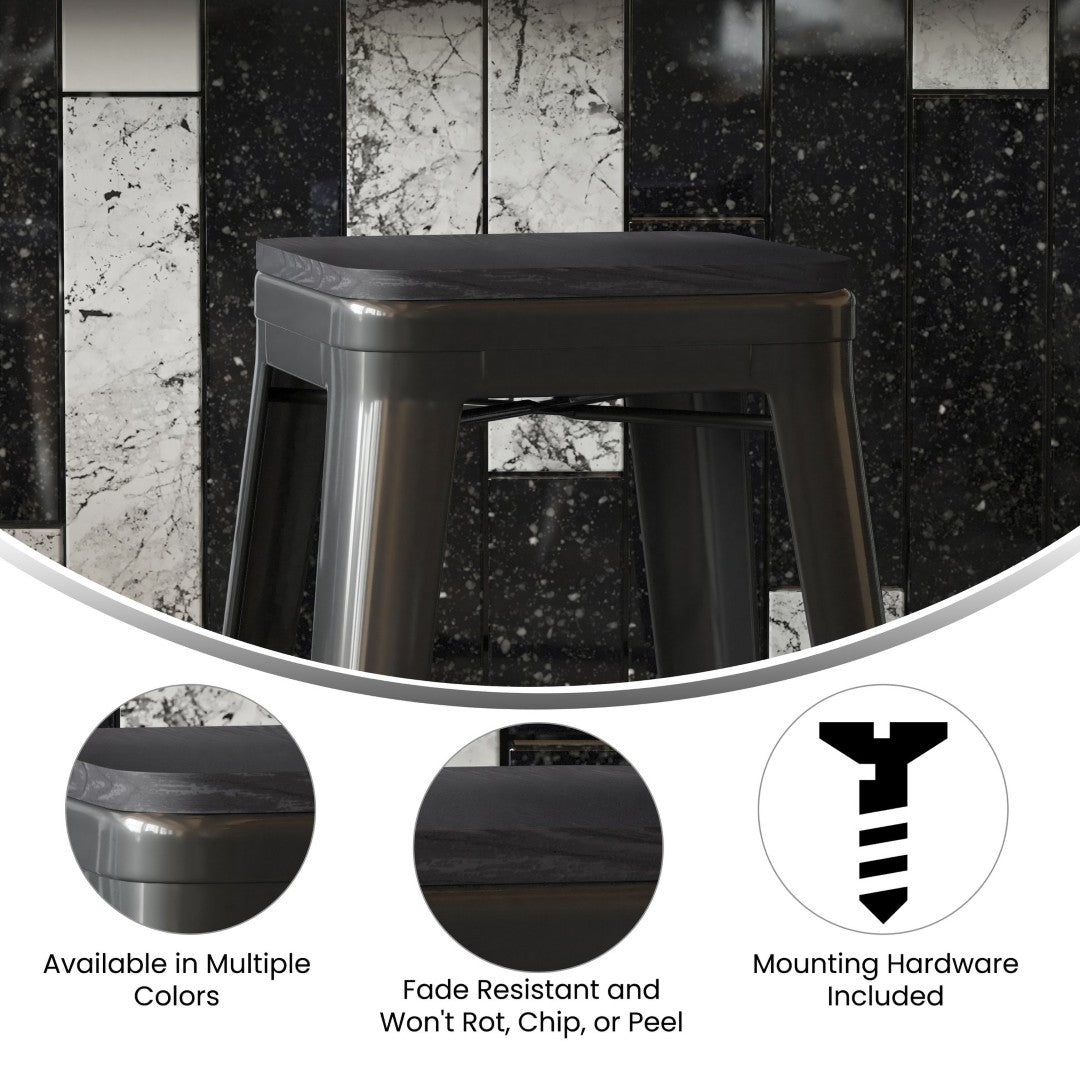 Give your dining or bar seating an instant style and durability upgrade with these sleek replacement seats. Crafted from weather-resistant polystyrene that mimics the look of wood, the Perry square seats blend modern lines with practical performance — ideal for restaurants, cafés, patios, or home kitchens. They install quickly on compatible metal frames, resist rot and peeling, and clean easily for low-maintenance use in both commercial and residential settings.