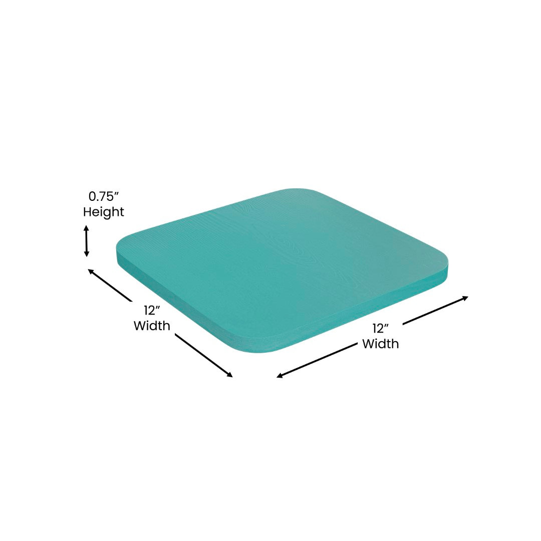 - Dimensions: 12"W x 12"D x 0.75"H — compact square profile fits most metal barstools and counter chairs