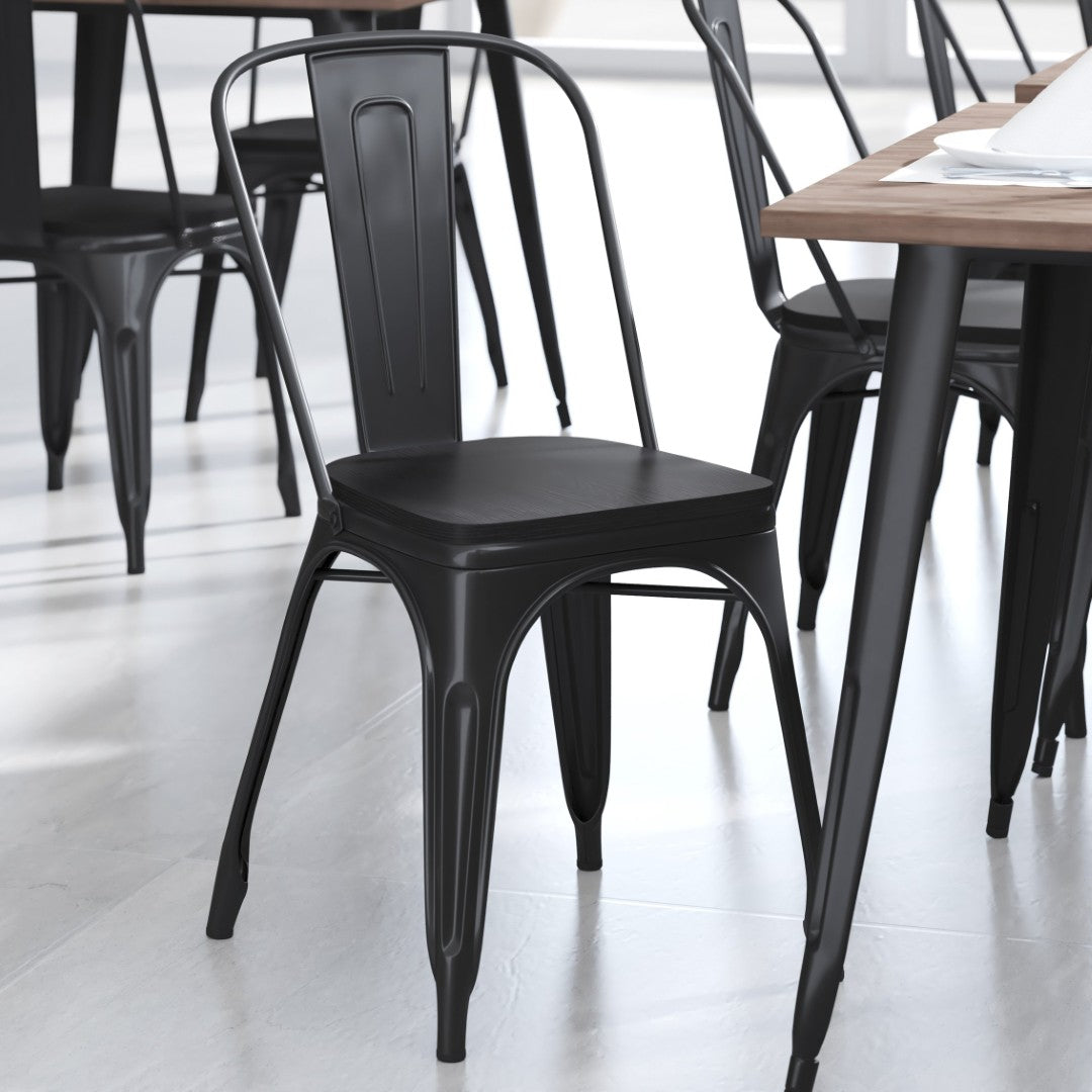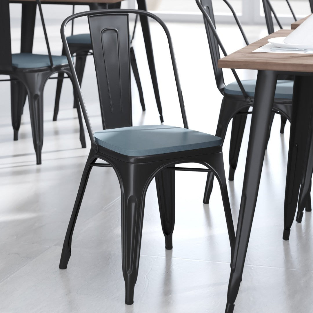 - Sleek black finish complements a variety of metal chair and stool styles and color schemes